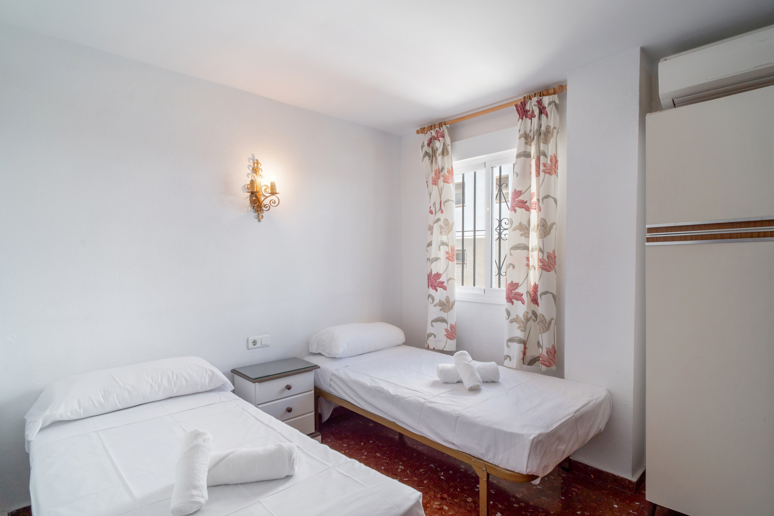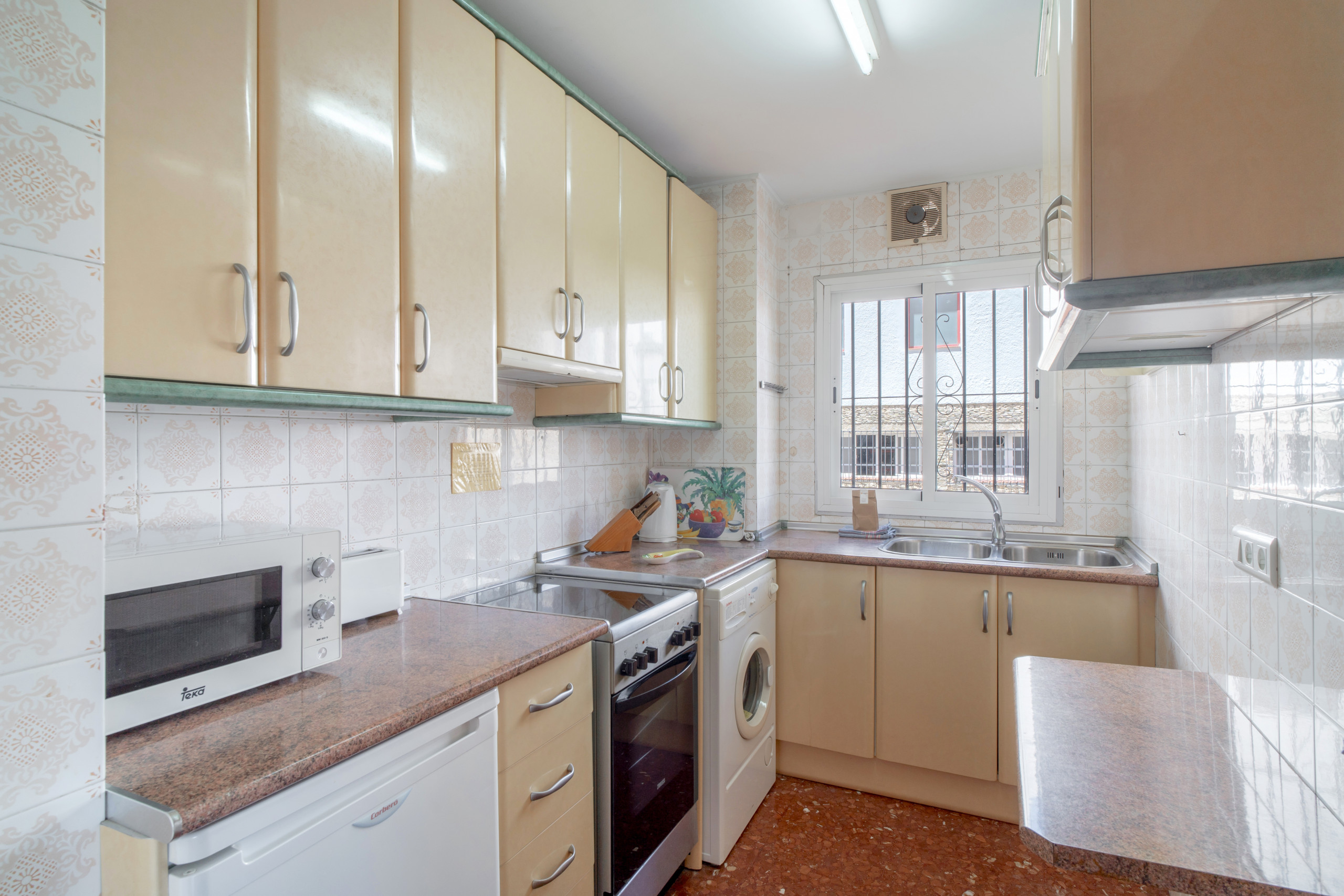 Het organiseren van een vakantie voor 6 personen in de gewilde Zona Parador betekent meestal dat je moet inleveren op locatie of ruimte, maar dit appartement biedt beide. U kunt met de hele groep ontbijten in de zonnige woonkamer, voordat u in slechts 3 minuten naar het strand van Playa Carabeillo loopt, of gewoon even op het balkon kijken om de sfeer bij het zwembad te checken voordat u naar beneden gaat. Het is een ruime en functionele plek, ontworpen zodat de logistiek van een grote groep geen seconde van uw rust in beslag neemt.De woning: De woning heeft 3 slaapkamers: één met een tweepersoonsbed en twee met eenpersoonsbedden, zodat elke gast zijn privacy heeft. Om de routine van zes personen te vergemakkelijken, heeft de accommodatie een complete badkamer met bad en een extra toilet, een detail dat 's ochtends voor het strand het verschil maakt.