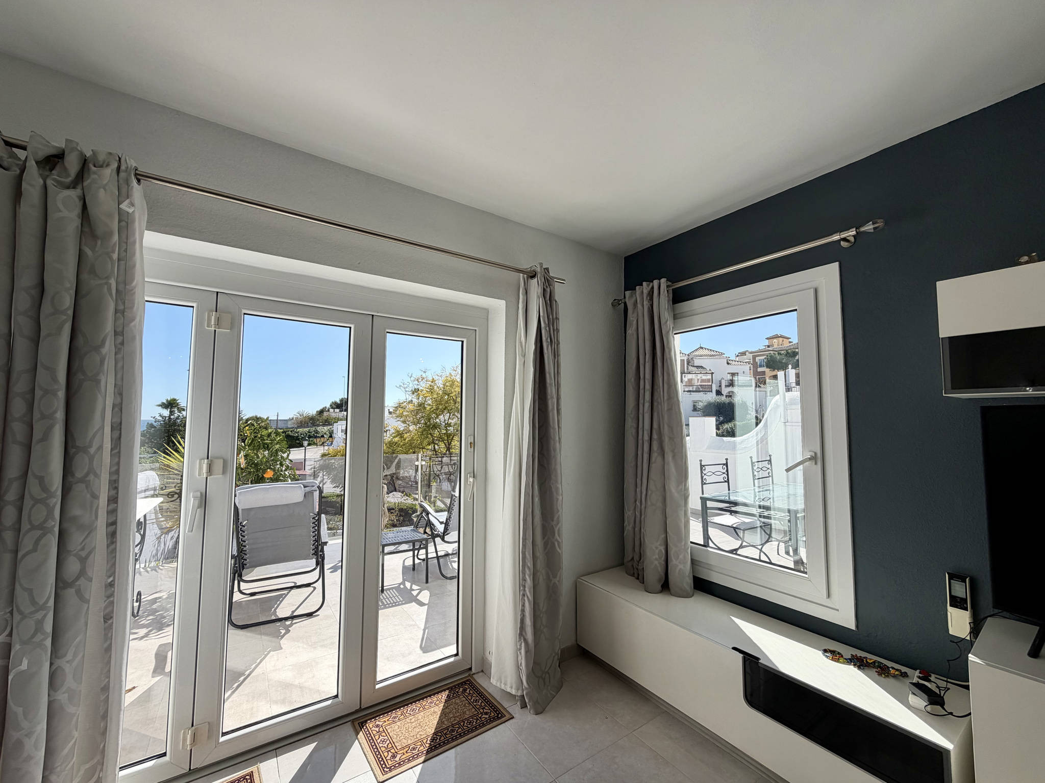 ✔ Faciliteiten van de urbanisatie: U heeft toegang tot een groot gemeenschappelijk zwembad omgeven door tuinen met parasols en een bar-restaurant dat ontbijt, dagmenu's en live sport biedt.✔ Uitzicht en ligging: Door de hoge ligging en de zuidelijke oriëntatie kunt u vanaf het terras genieten van een constant uitzicht op zee en bent u verzekerd van direct zonlicht gedurende een groot deel van de dag.