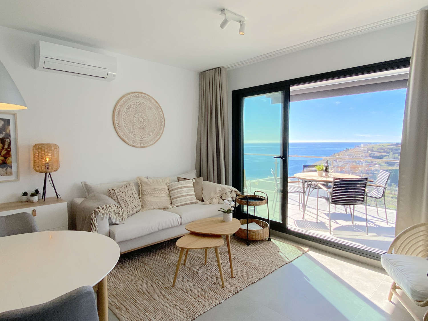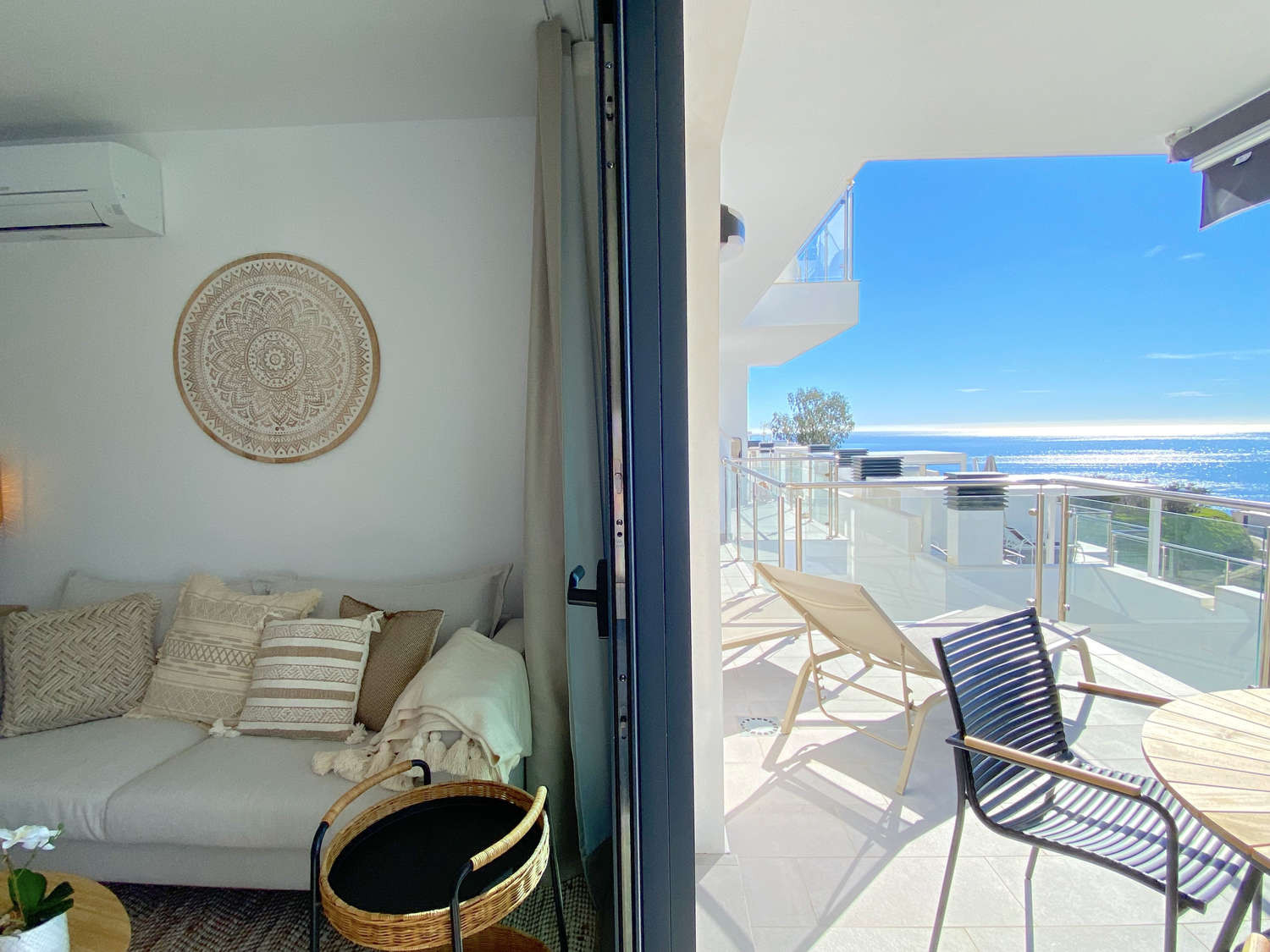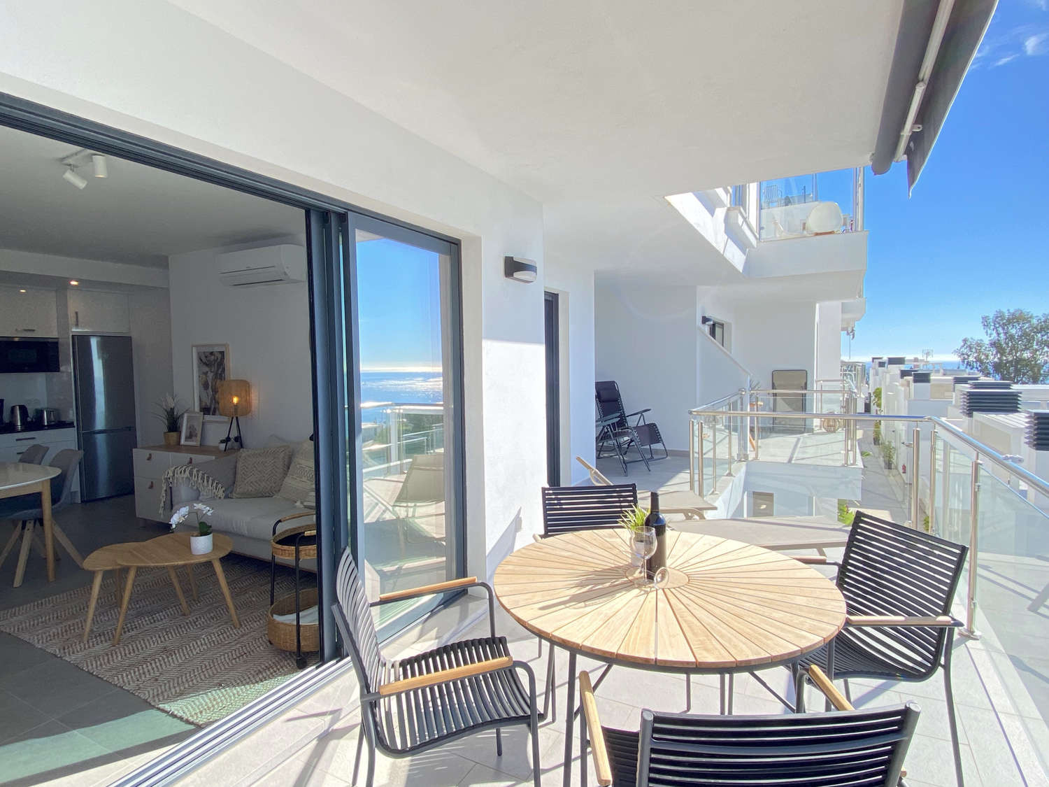 Ervaar de exclusiviteit van dit spectaculaire appartement in de Urbanización Balcón del Mar, waar de hoogte van de tweede verdieping garant staat voor het beste uitzicht. Ontworpen voor maximale ontspanning, is het ruime privéterras met ligstoelen de perfecte plek om in alle privacy te zonnen of te genieten van een onvergetelijk diner dankzij de gasbarbecue met de Middellandse Zee op de achtergrond.De woning: Deze accommodatie valt op door zijn lichtinval en een slimme indeling die de omgeving vooropstelt. Het heeft twee slaapkamers met tweepersoonsbedden, beide met het unieke kenmerk dat ze uitzicht op zee vanuit het bed bieden, zodat u kunt ontwaken met de blauwe horizon. Het heeft twee complete badkamers met douche en een moderne keuken die is uitgerust met de nieuwste apparatuur voor een luxe verblijf.