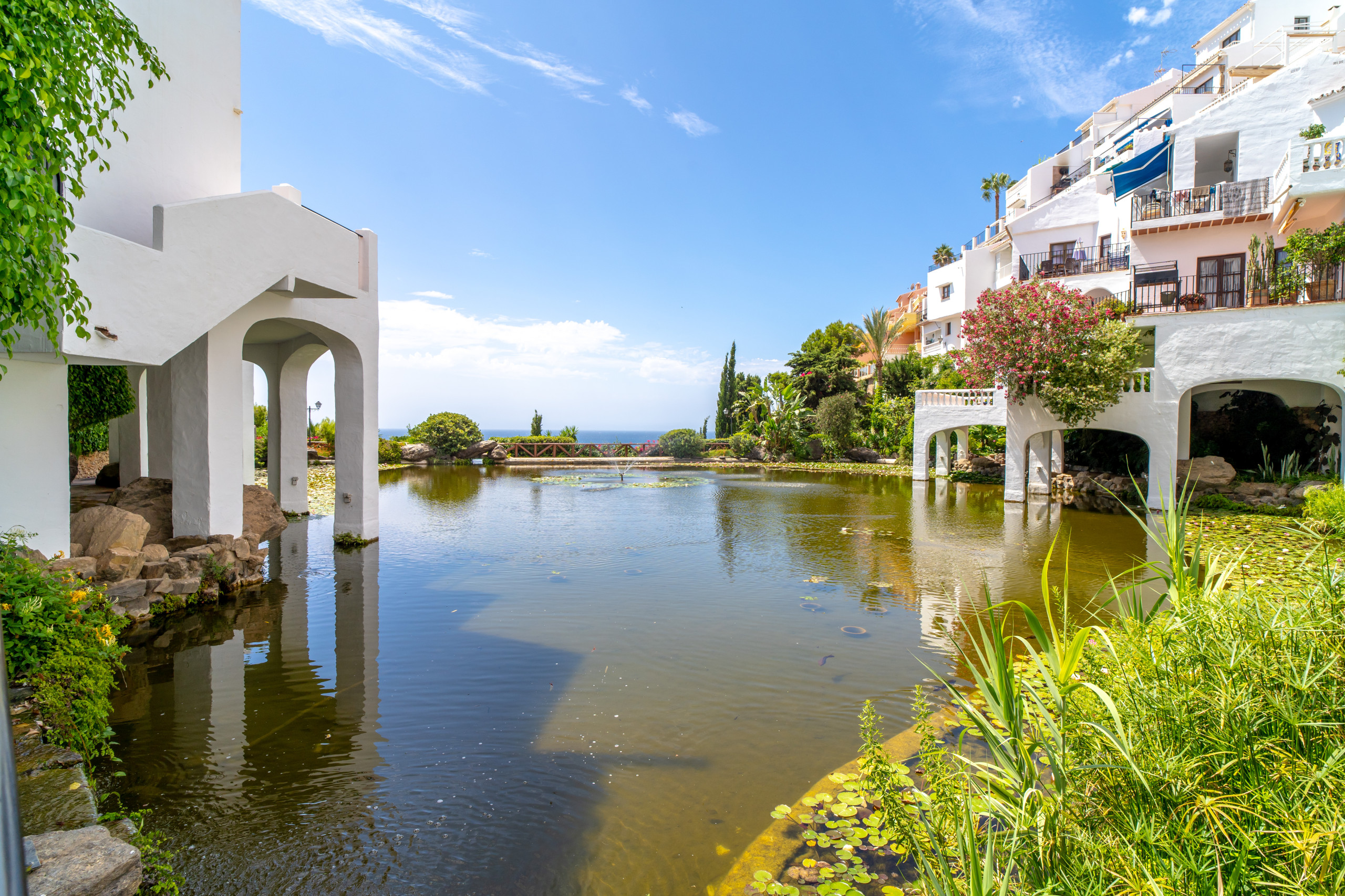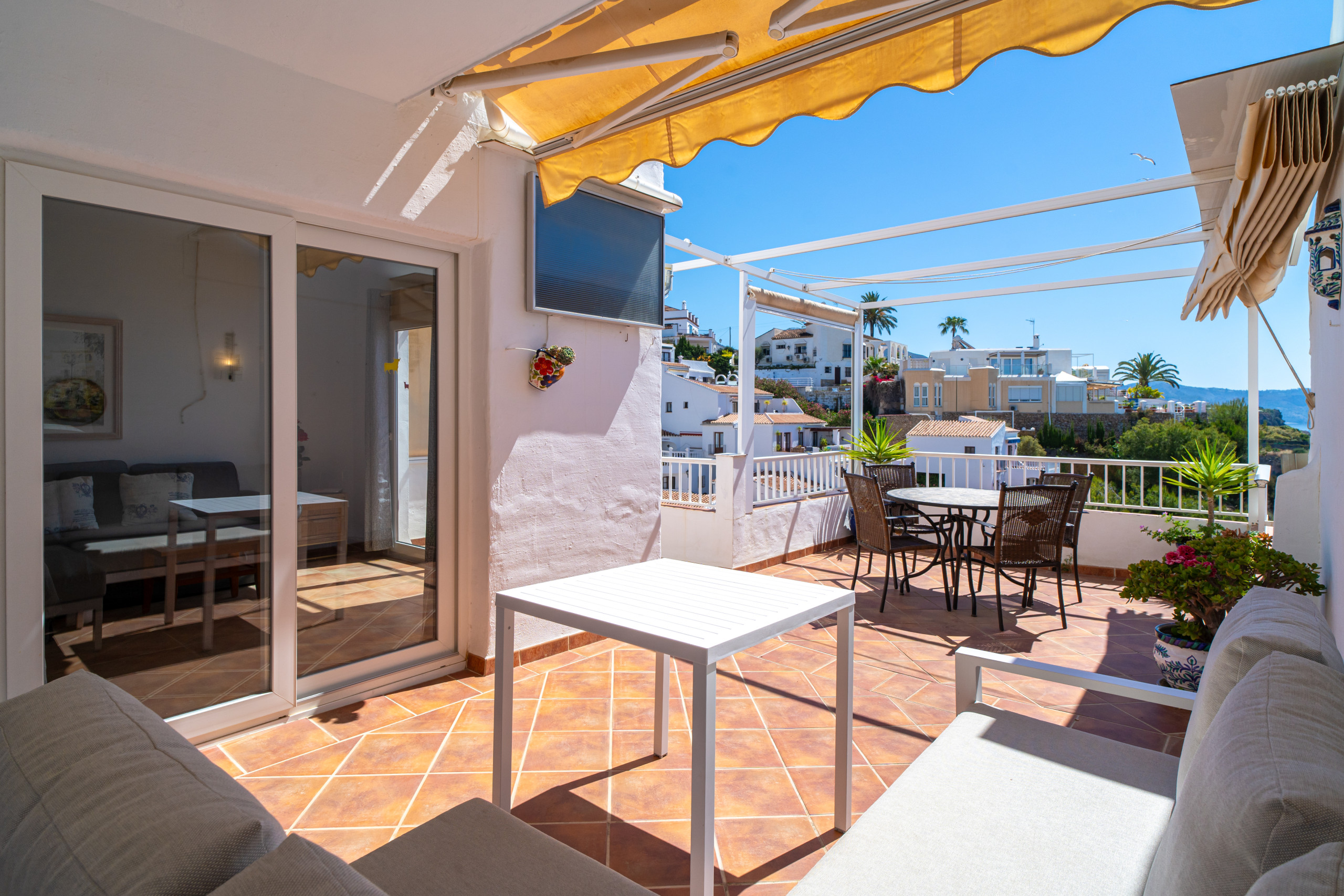 Dit stijlvolle en lichte appartement met twee slaapkamers combineert mediterrane elegantie, moderne voorzieningen en traditioneel Andalusisch karakter – ideaal voor stellen of gezinnen die op zoek zijn naar een onvergetelijke en rustige vakantie in Nerja. Het hoogtepunt van de woning is het spectaculaire privéterras van 30 m², waar u kunt genieten van een panoramisch uitzicht op het strand van Burriana, de blauwe zee en het siermeer omgeven door witgekalkte huizen. Of u nu geniet van een ontbijt in de ochtendzon of een glas wijn bij zonsondergang, deze ruimte zal uw favoriete plekje worden.