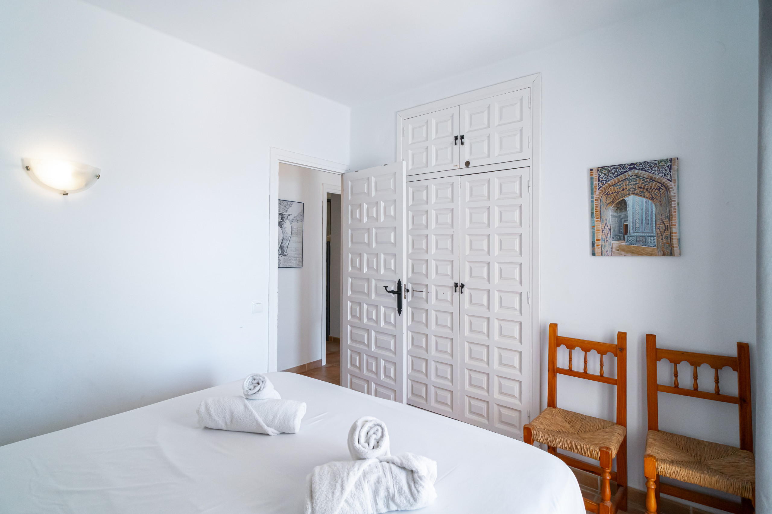 - Hoofdslaapkamer: voorzien van een comfortabel tweepersoonsbed, inbouwkasten en directe toegang tot het terras via grote balkondeuren. Word wakker met uitzicht op zee en de rustige sfeer van Capistrano Playa.