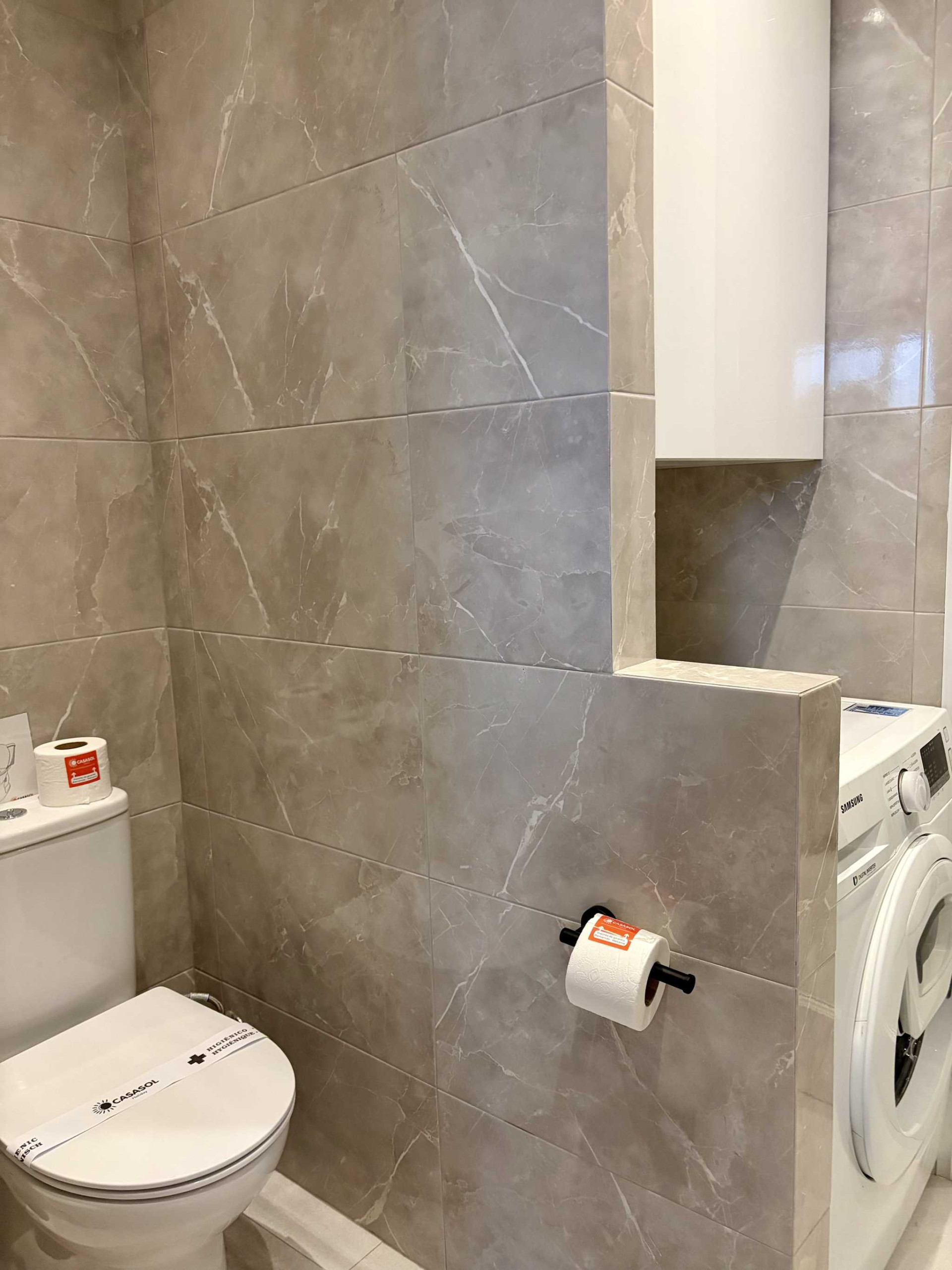 - Eigen badkamer in de tweede slaapkamer met douche, toilet en wasmachine.
