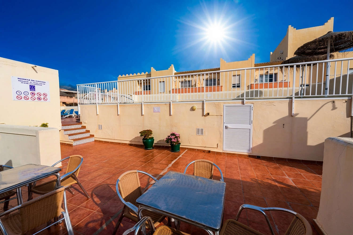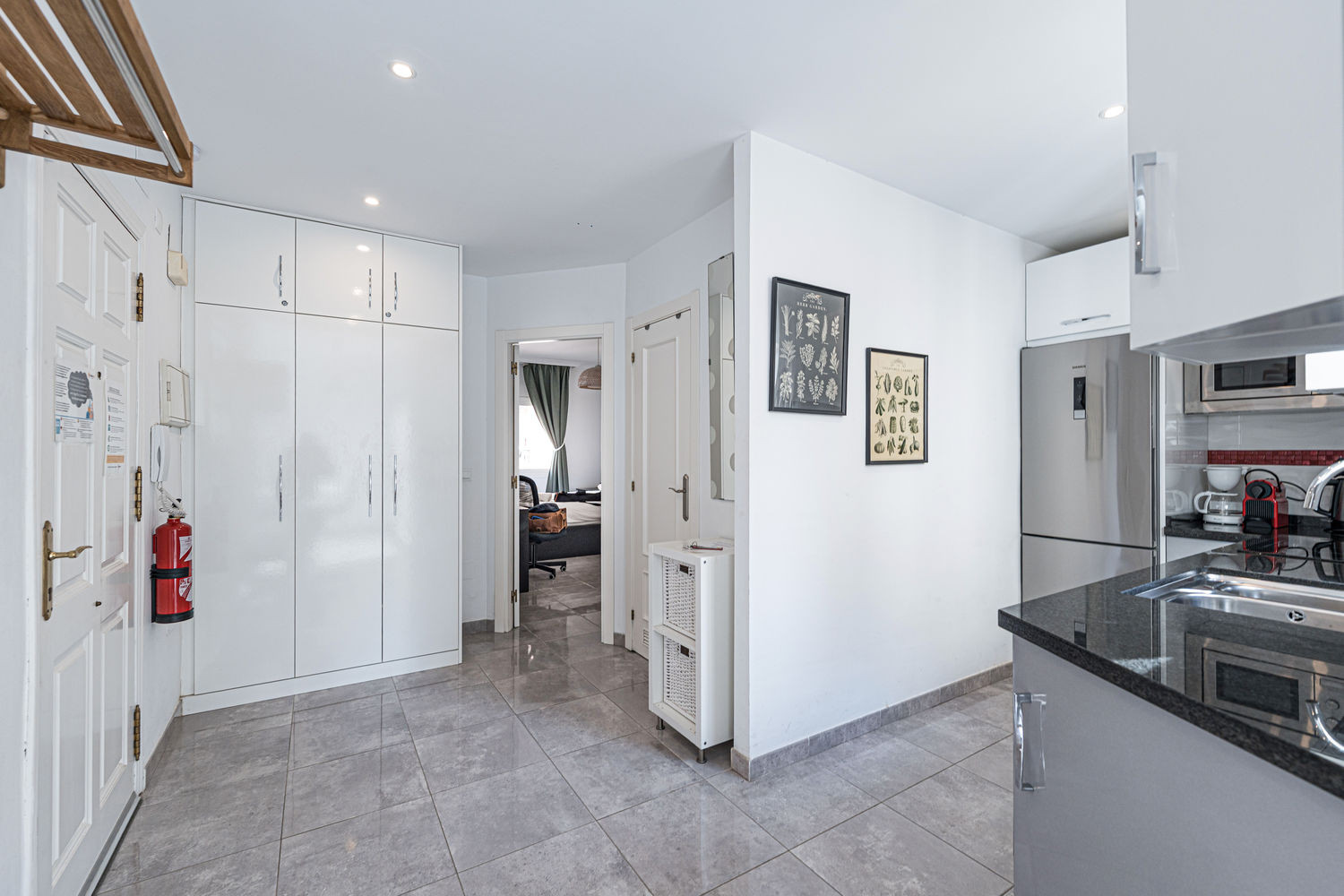 Het appartement is vernieuwd om een opgeruimde en technologische sfeer te bieden. In de woonkamer beschikt u over een tv met 190 internationale zenders, terwijl de hoofdslaapkamer, met zijn grote tweepersoonsbed, een zeer gewaardeerd detail verbergt: een bureau met lamp. Dankzij de snelle glasvezel internetverbinding is deze hoek perfect voor snelle taken of een langer verblijf, waarbij rust en totale connectiviteit worden gecombineerd.Andalusische urbanisatie met zwembad op het dak