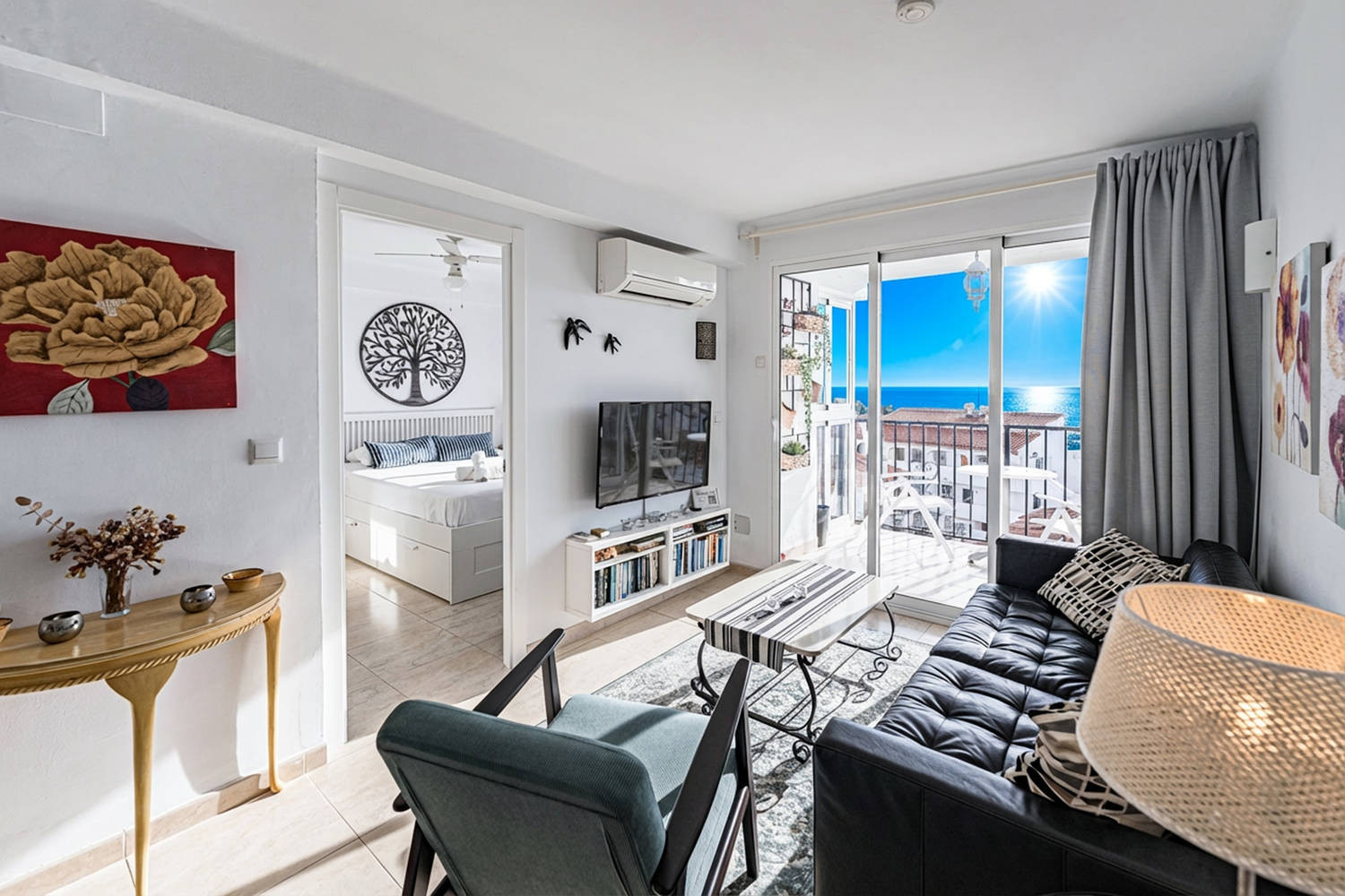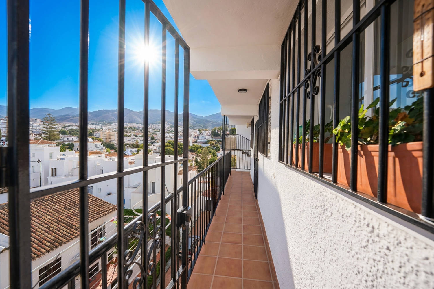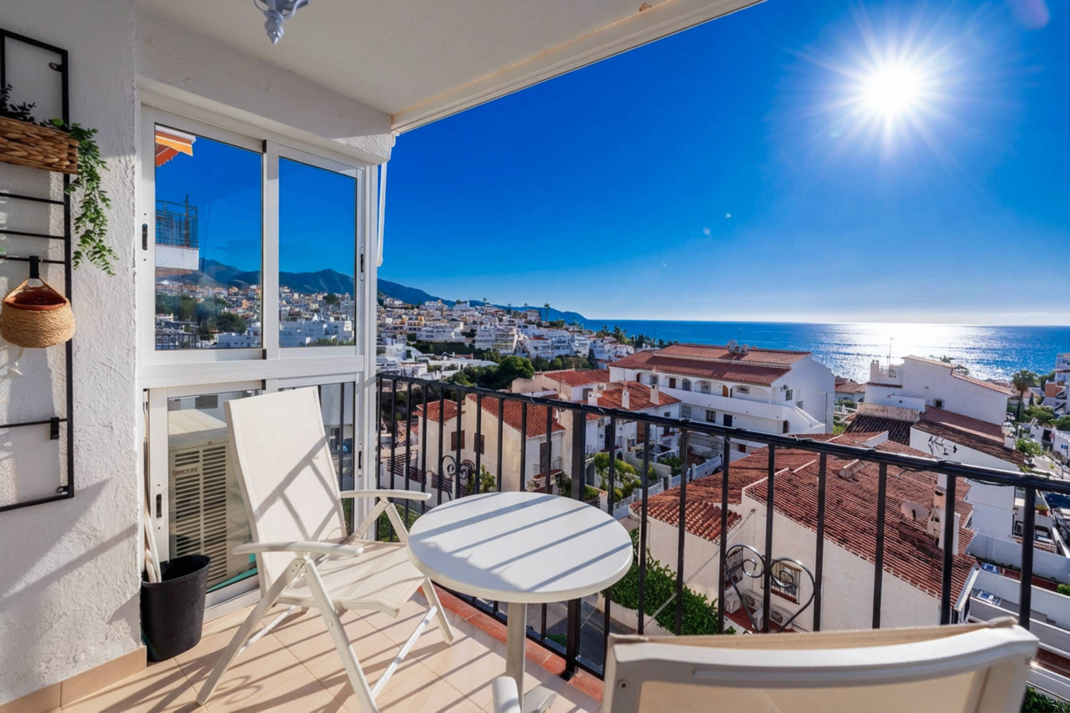 Binnen- en buitenleven: De woning valt op door zijn terras met glazen wand, een van de meest aangename ruimtes van het appartement. Vanaf hier kunt u genieten van een weids uitzicht op de typische huizen van Nerja en de zee, in een rustige omgeving die ideaal is om te ontbijten, te lezen of aan het eind van de dag te ontspannen.