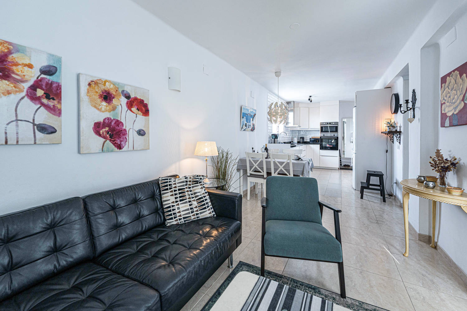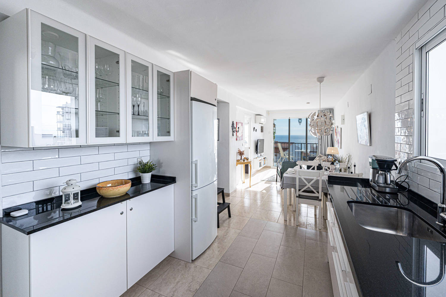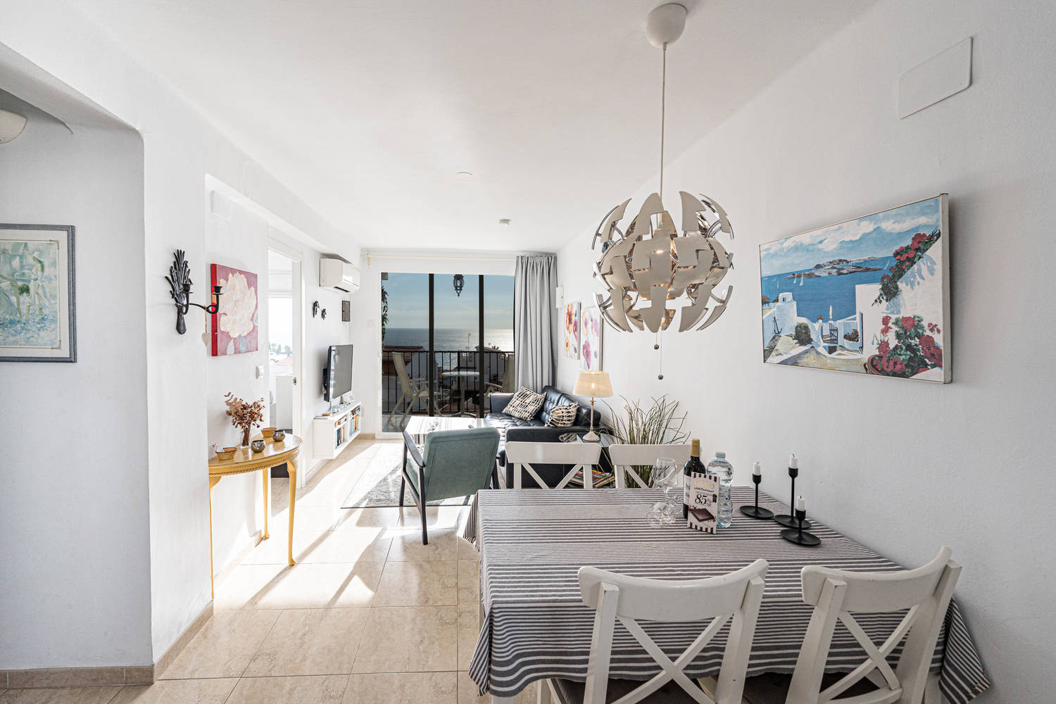 Binnen- en buitenleven: De woning valt op door zijn terras met glazen wand, een van de meest aangename ruimtes van het appartement. Vanaf hier kunt u genieten van een weids uitzicht op de typische huizen van Nerja en de zee, in een rustige omgeving die ideaal is om te ontbijten, te lezen of aan het eind van de dag te ontspannen.