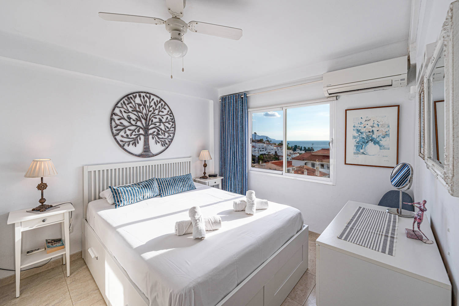✔ Twee slaapkamers met tweepersoonsbed, waarvan één met uitzicht op zee