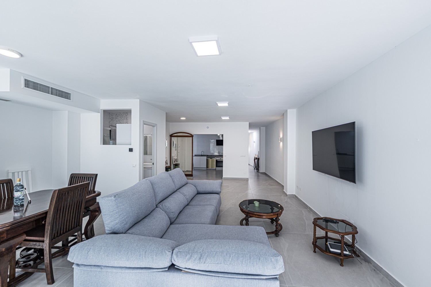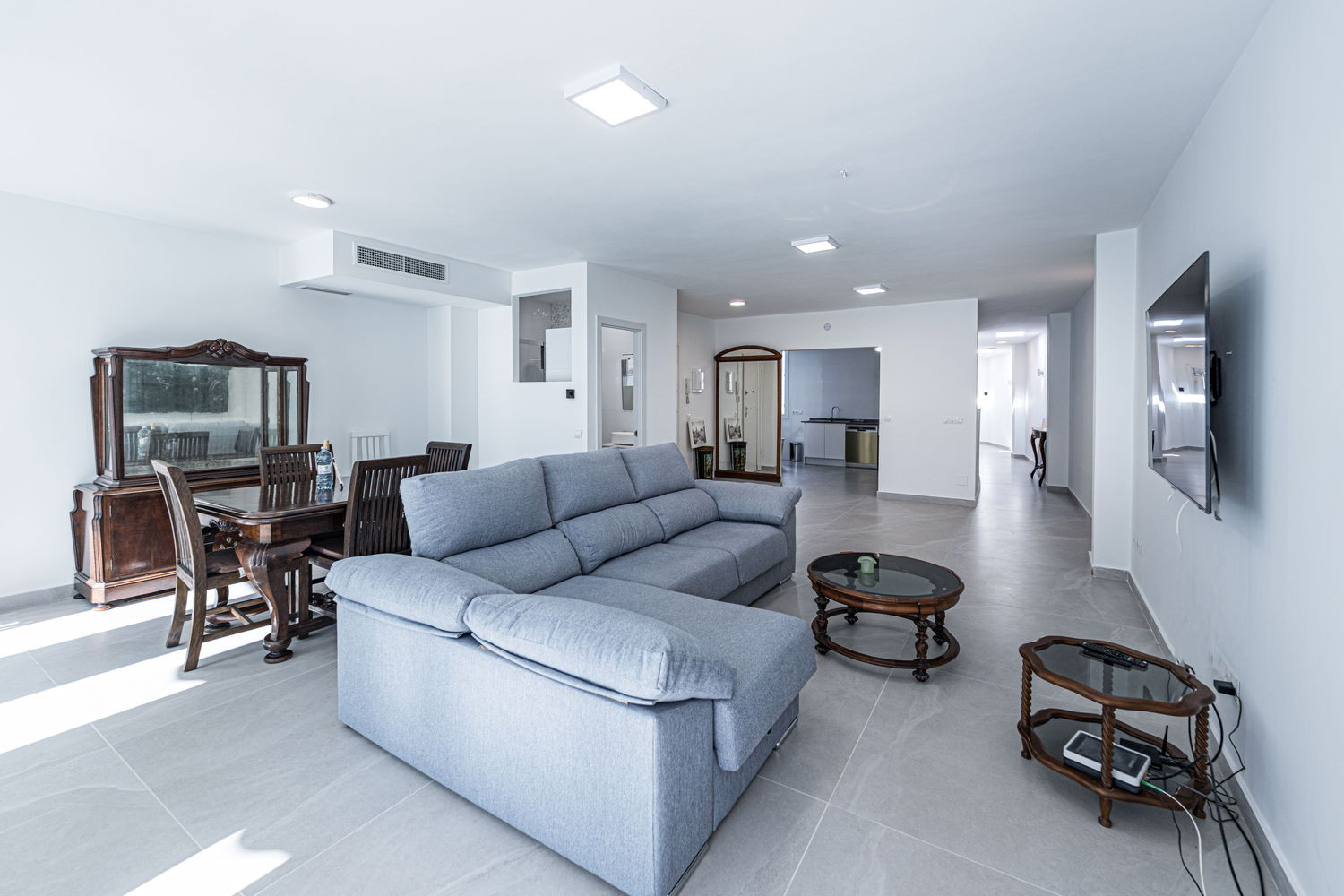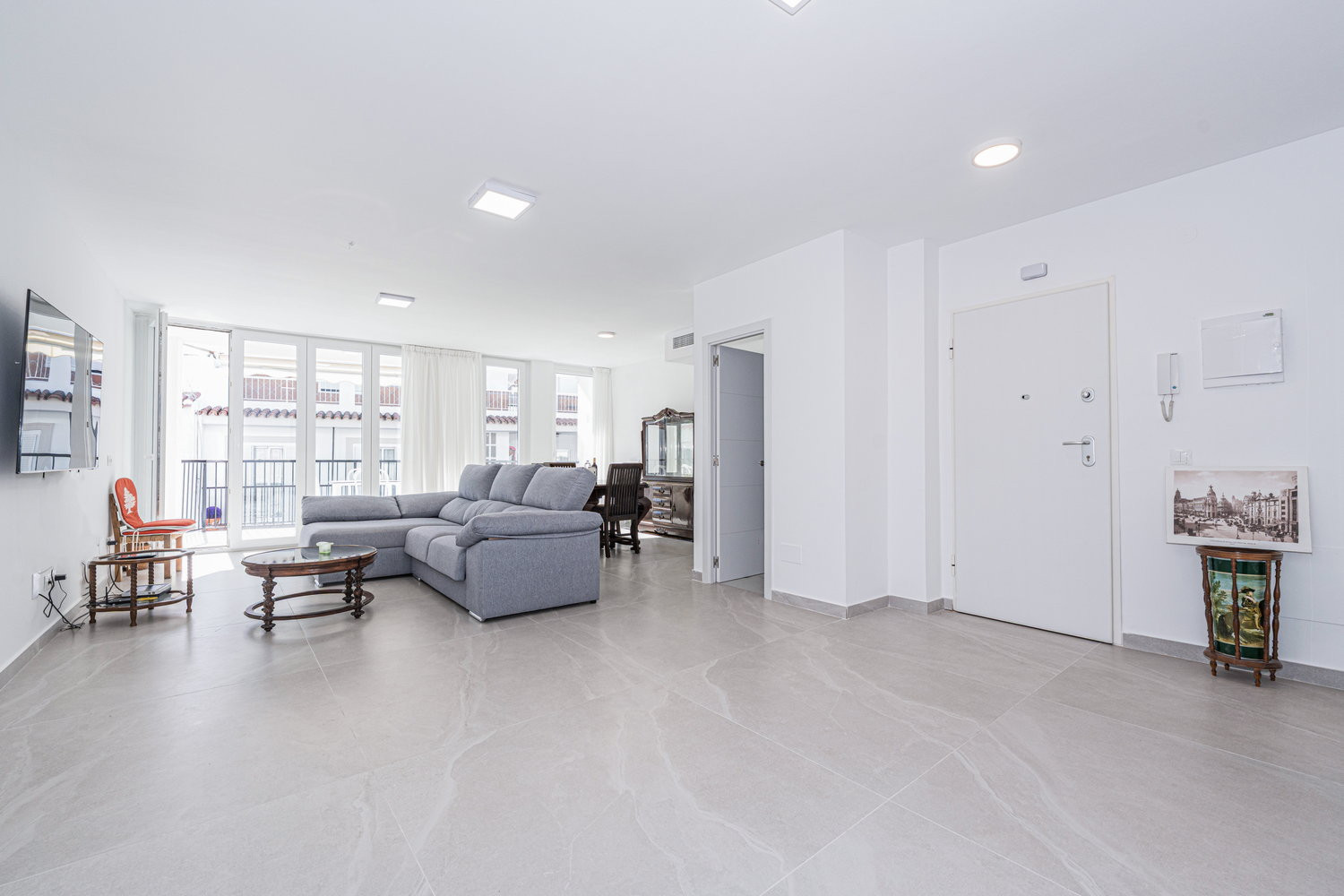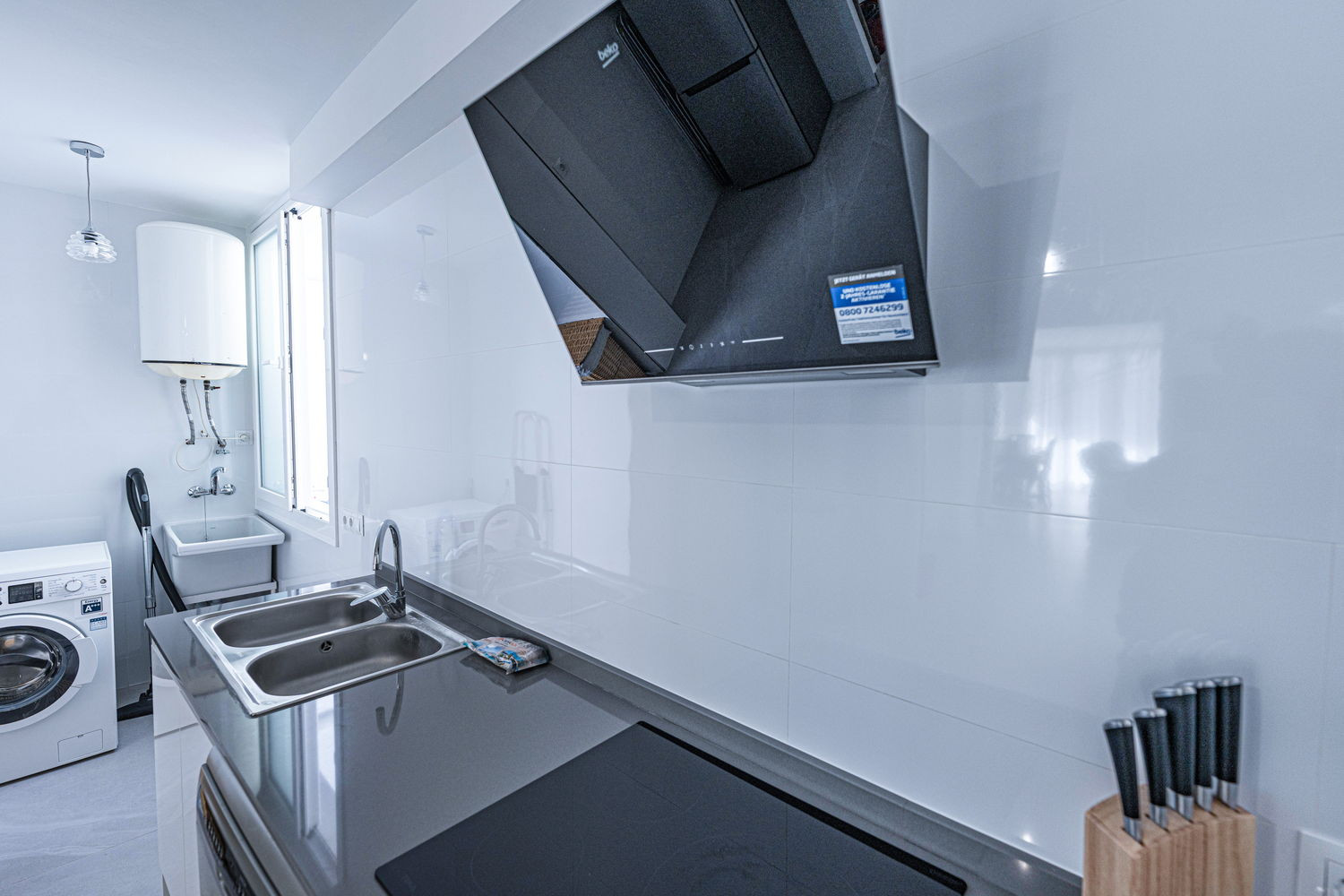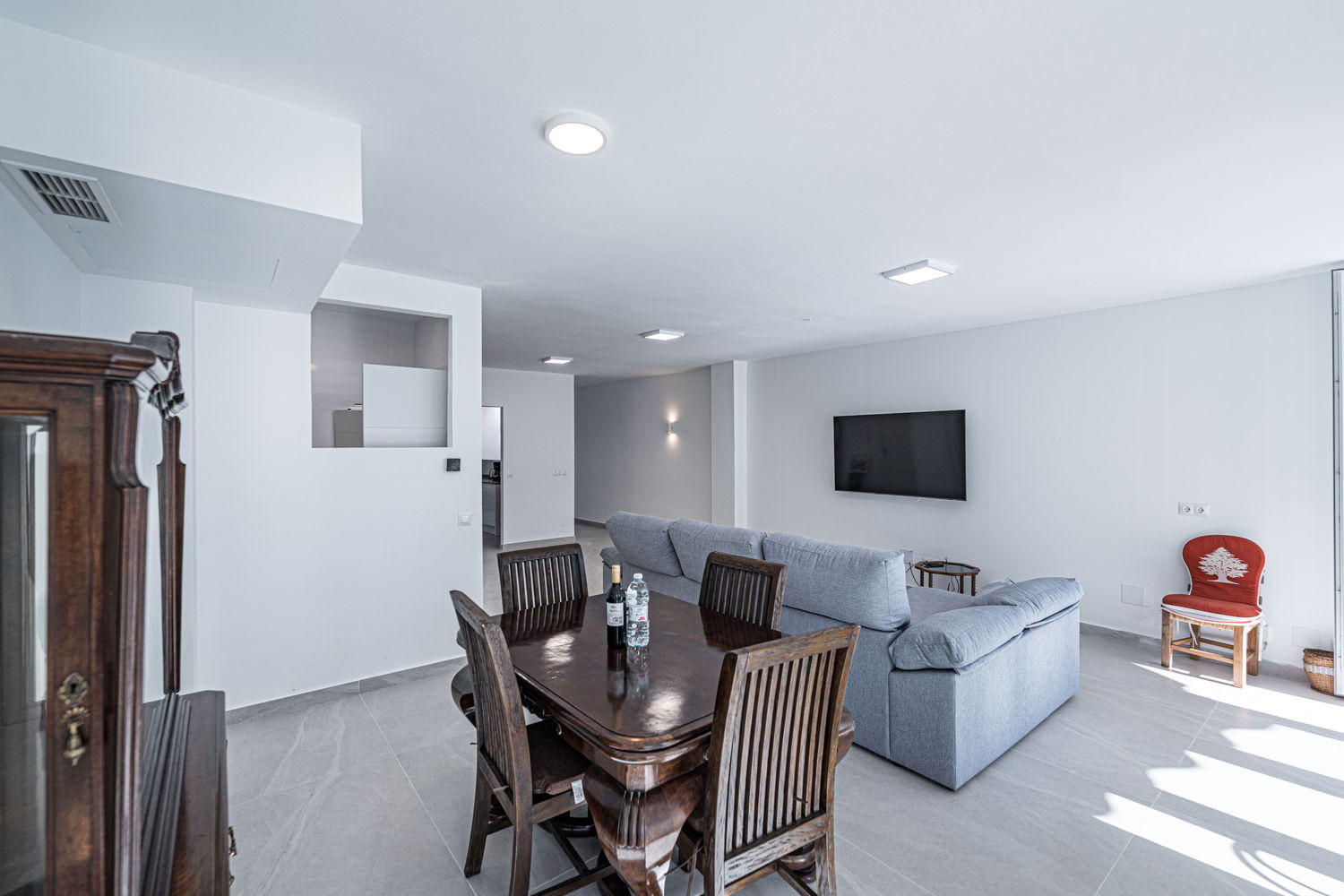 Binnen- en buitenleven: Het hart van het huis is een uitzonderlijk ruime en lichte woonkamer, die direct in verbinding staat met het terras aan de hoofdstraat. Hierdoor kan de bries uit het centrum de hele ruimte verfrissen. De keuken is voorzien van hoogwaardige apparatuur en is volledig uitgerust met alles wat u nodig heeft voor uw verblijf, inclusief vaatwasser, oven en magnetron. Het is een functionele en moderne ruimte, ideaal voor het bereiden van een snelle kop koffie voordat u naar het strand gaat, tot een complete maaltijd met het hele gezin.