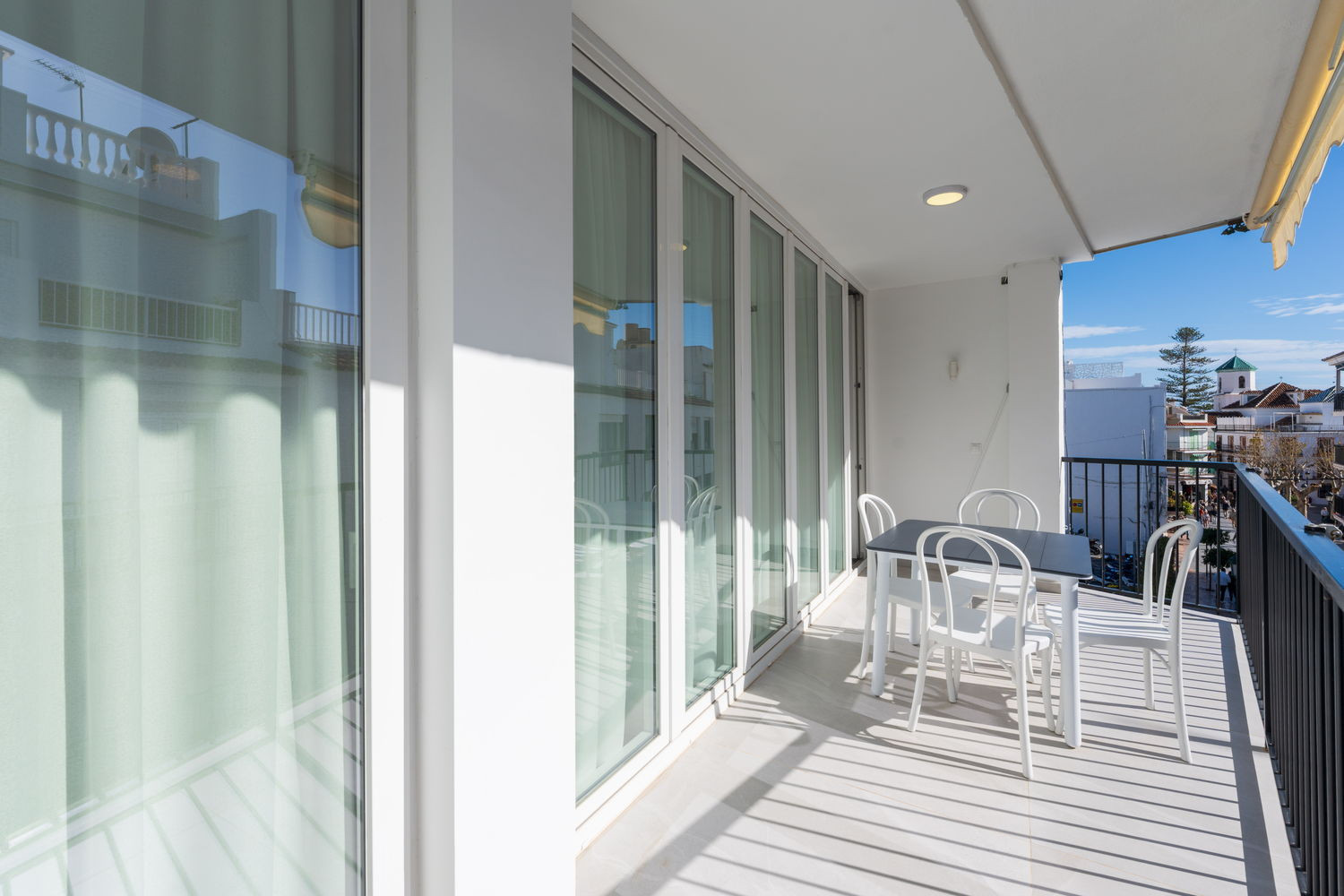 Deze accommodatie ligt aan de strategische Calle Diputación Provincial en is de perfecte uitvalsbasis voor wie de auto even wil laten staan. U kunt genieten van het lokale leven vanaf uw privé terras of een paar stappen lopen om in het hart van Nerja te komen, met het Balcón de Europa en de belangrijkste stranden praktisch om de hoek.De woning: Een ruime woning ontworpen voor groepen of gezinnen tot 6 personen. De indeling bestaat uit 3 slaapkamers: een hoofdslaapkamer met een queensize bed en twee extra slaapkamers met elk twee eenpersoonsbedden. Er zijn 2 complete badkamers (een daarvan is zowel vanuit de gang als vanuit de hoofdslaapkamer toegankelijk) en een gang die opvalt door het constante natuurlijke licht dankzij de ingebouwde dakramen.