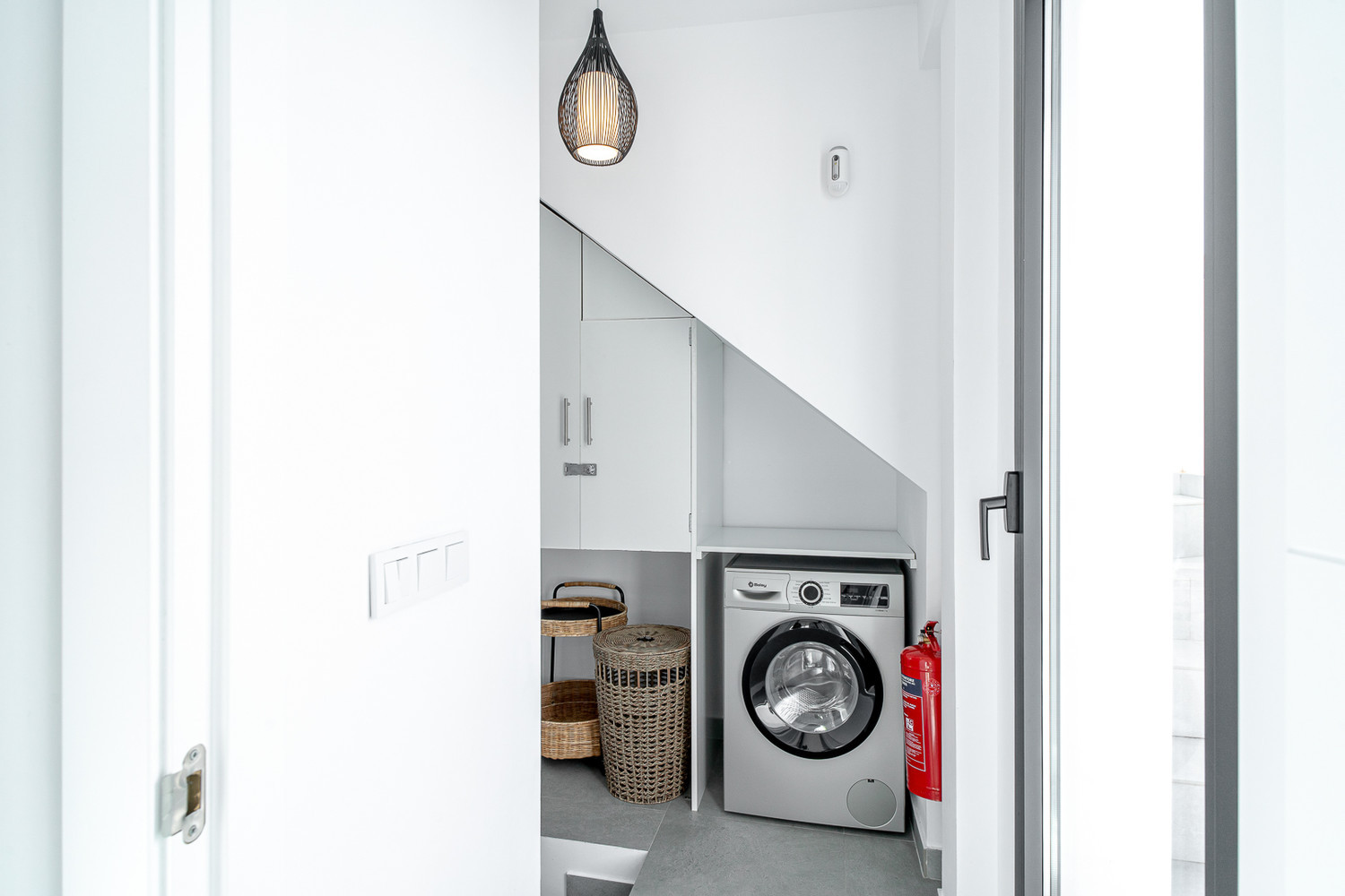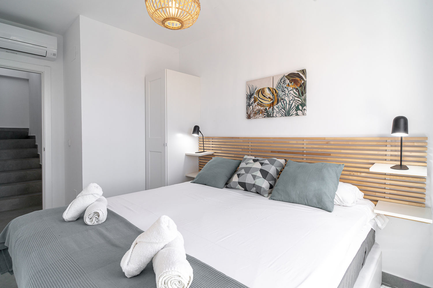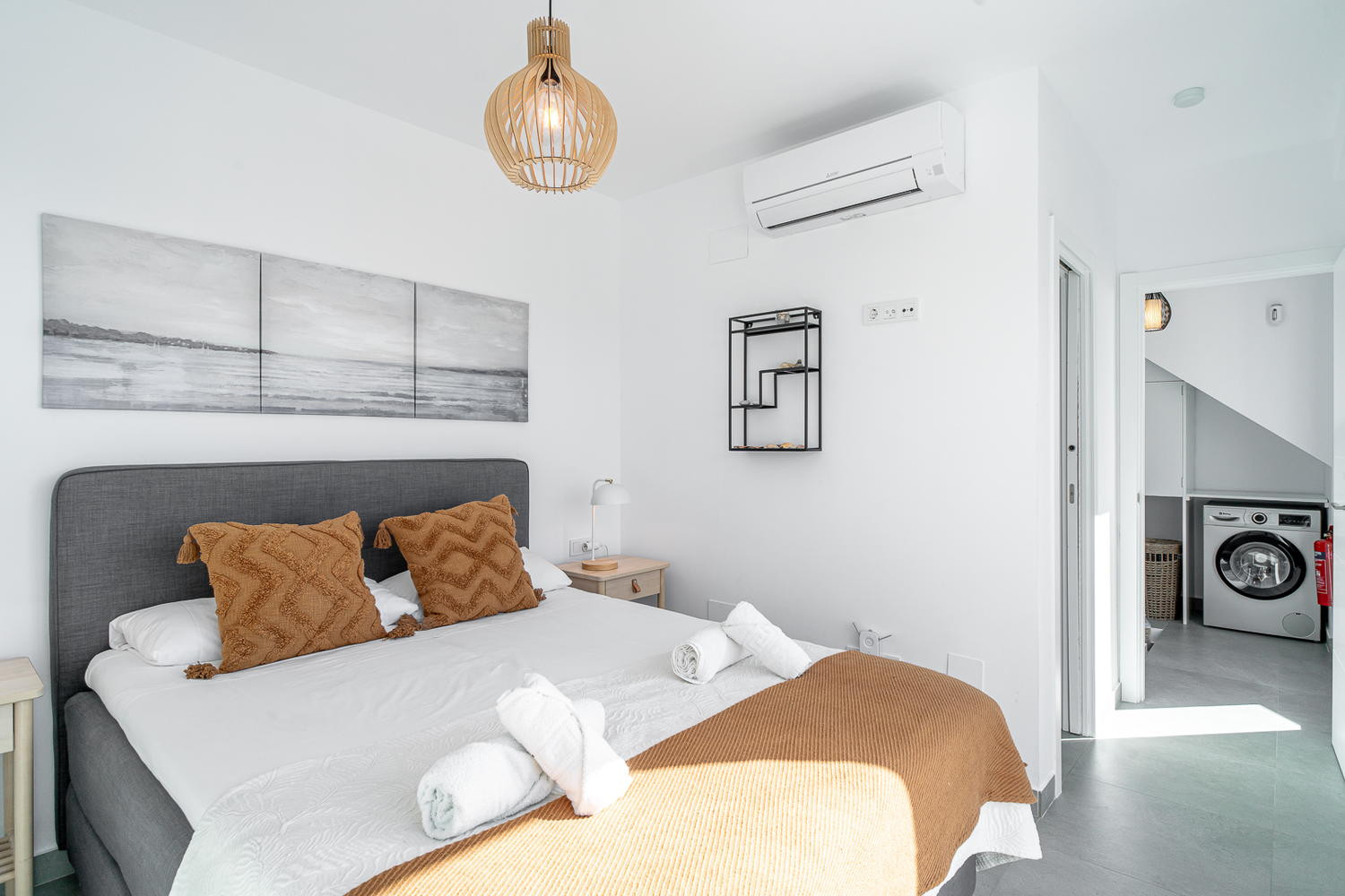 Modern och fräsch inredning i Scandinavisk stil, härligt att vakna i master bedbekijk meer