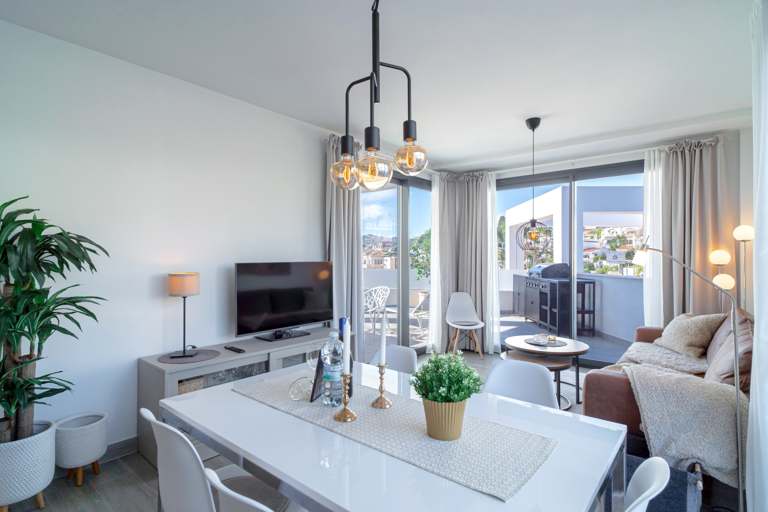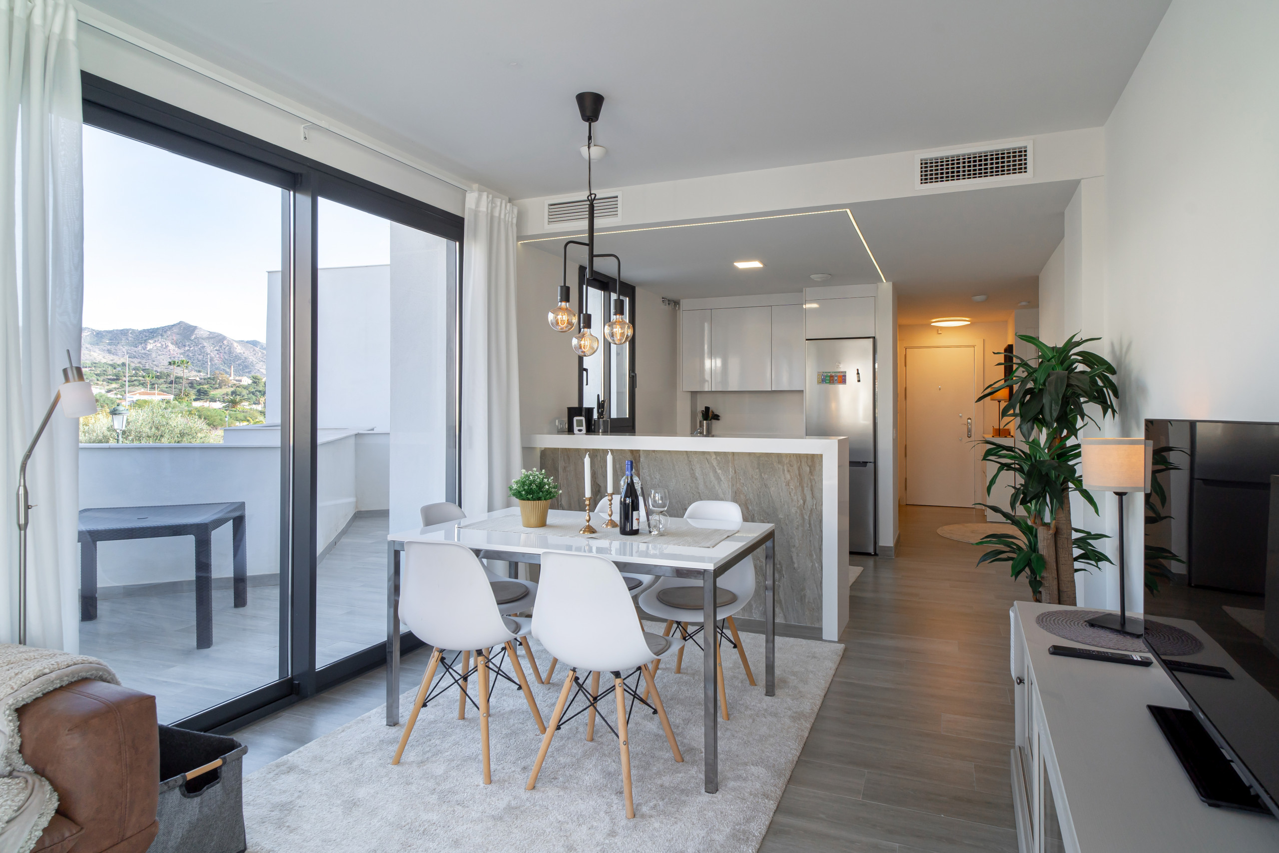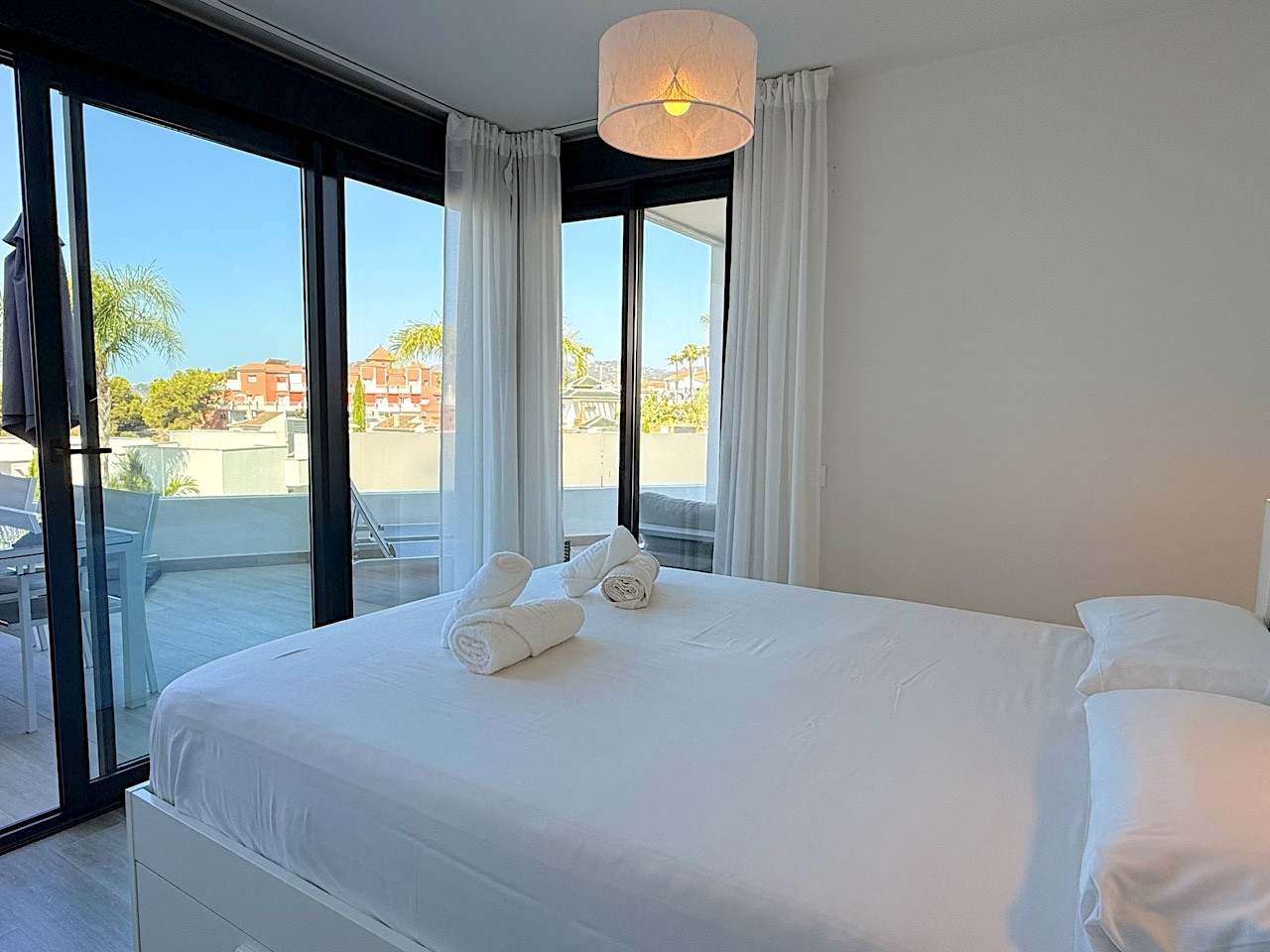 Er zijn twee moderne badkamers, centrale airconditioning met koel- en verwarmingsopties en een volledig uitgeruste keuken met de nieuwste apparatuur. De ruime woonkamer, ingericht met strak modern meubilair, heeft een Smart TV, high-speed internet en toegang tot het terras, een perfecte ruimte om tot rust te komen terwijl je geniet van een prachtig uitzicht op zee.