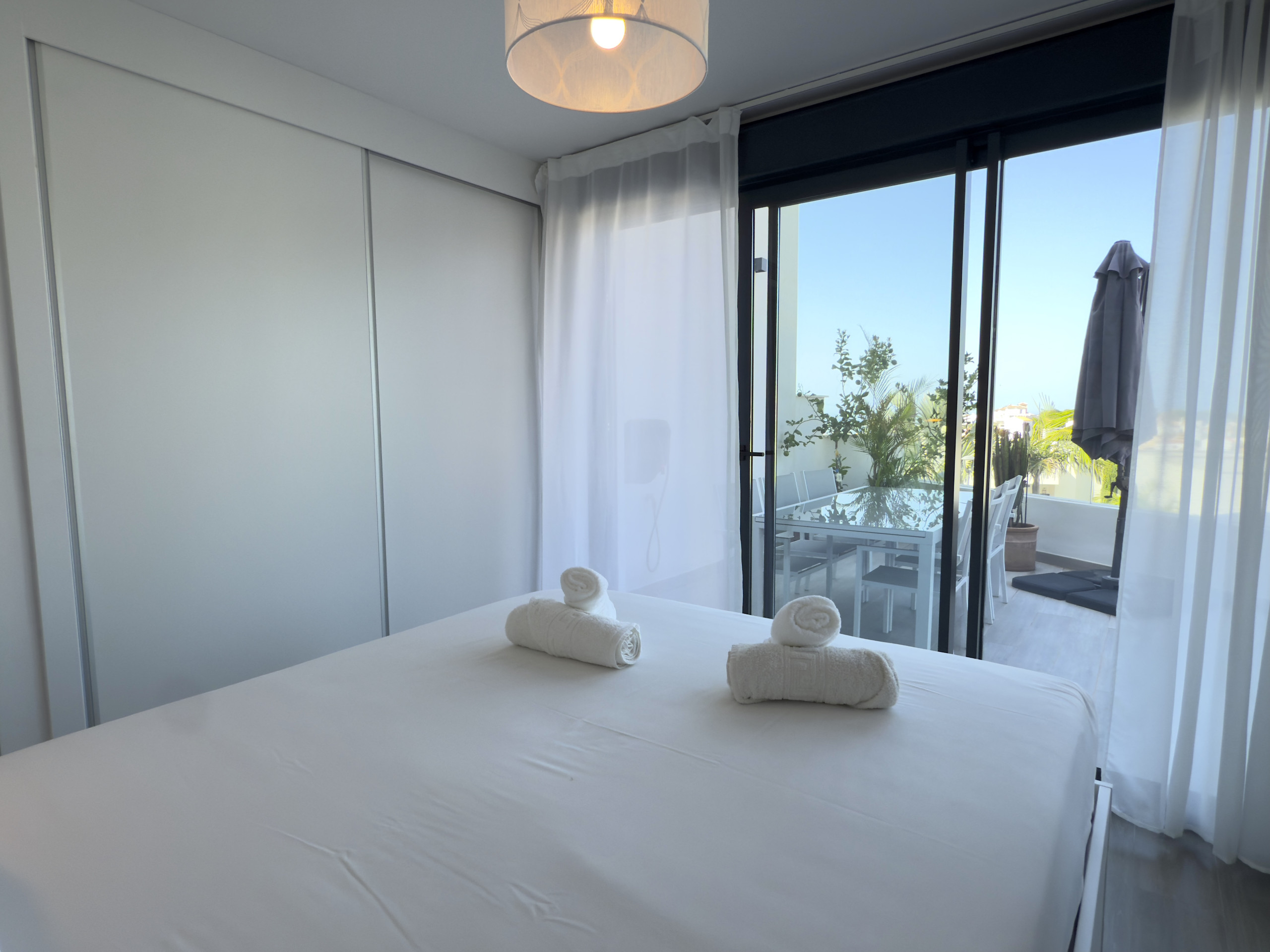 Royal Palm Luxe is een luxe en stijlvol appartement op het zuidwesten, ontworpen met modern meubilair en de nadruk op comfort en ontspanning. Het beschikt over een groot terras met een eethoek, loungeruimte en een buitenkeuken uitgerust met een barbecue, perfect om buiten te genieten van maaltijden en bijeenkomsten. Binnen beschikt het appartement over drie prachtig ingerichte slaapkamers, waaronder een grote slaapkamer met een eigen badkamer en directe toegang tot het terras, plus twee extra slaapkamers met tweepersoonsbedden en matrassen van hoge kwaliteit voor ultiem comfort.