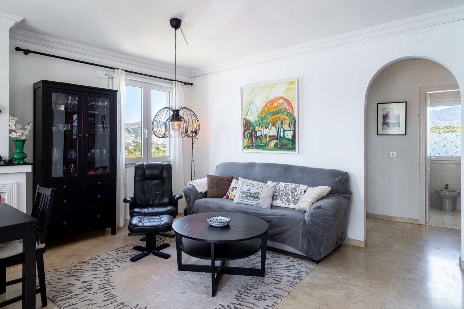 Privéterras met panoramisch uitzicht op de Middellandse Zee en de bergen.