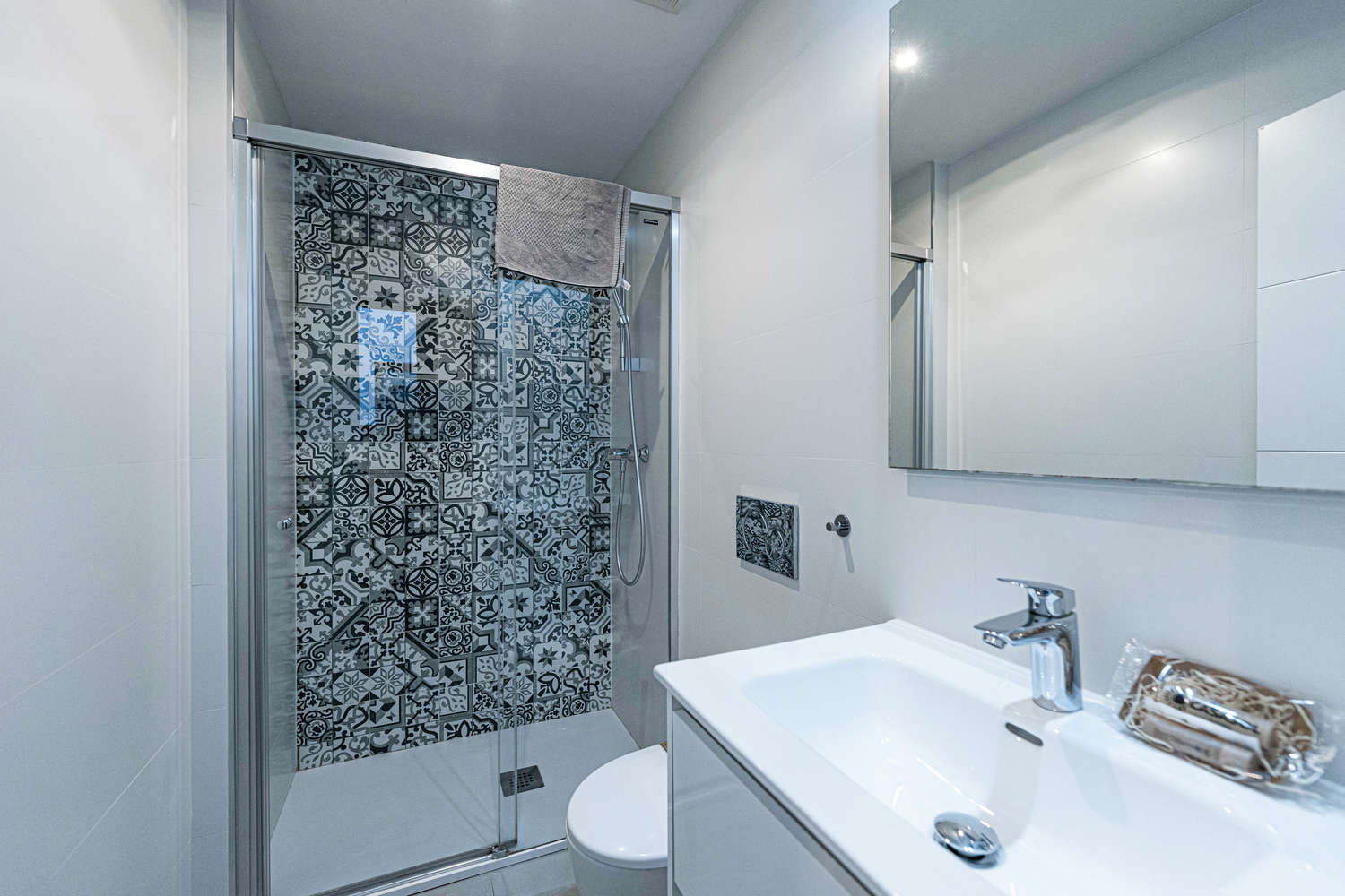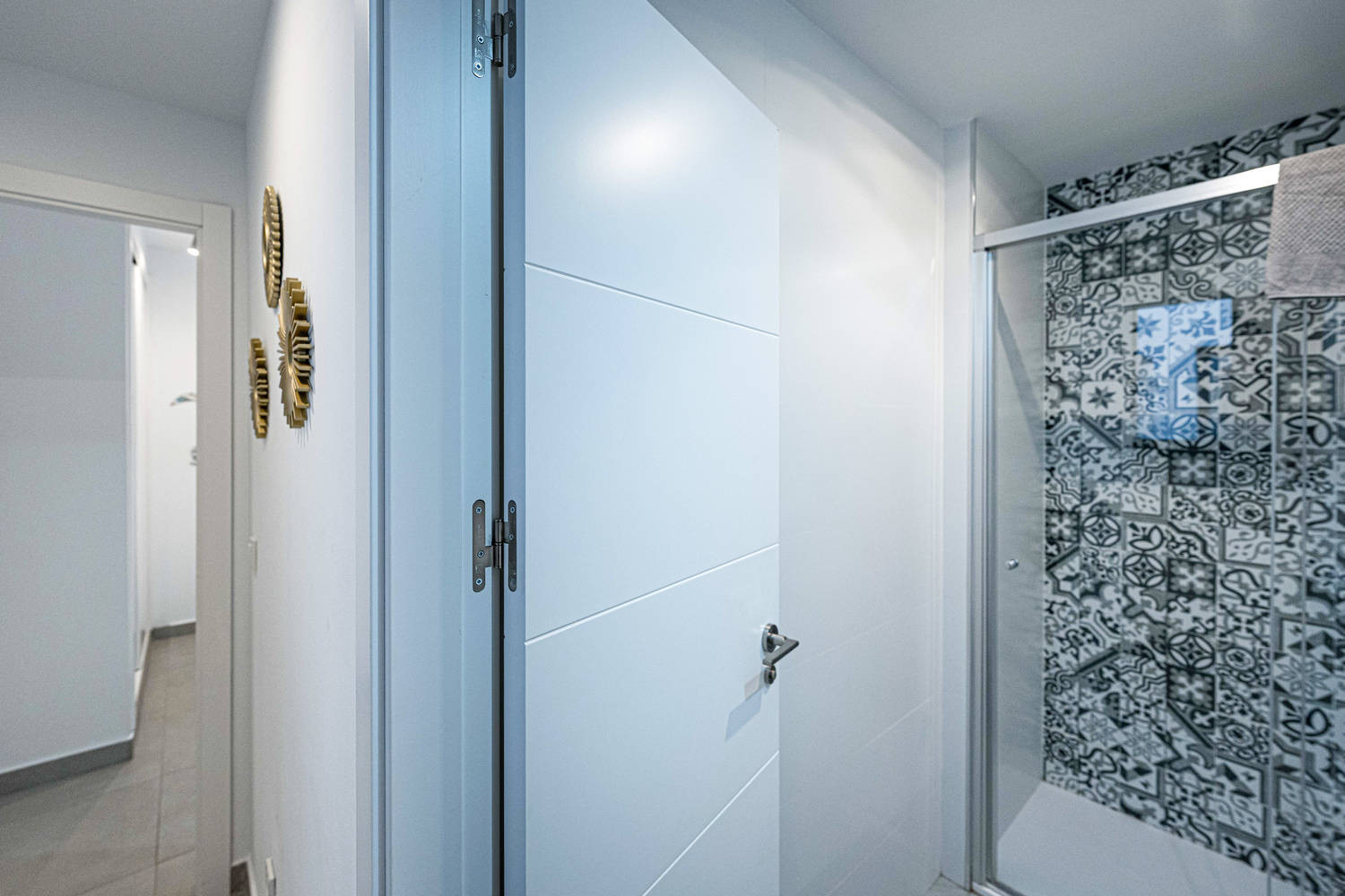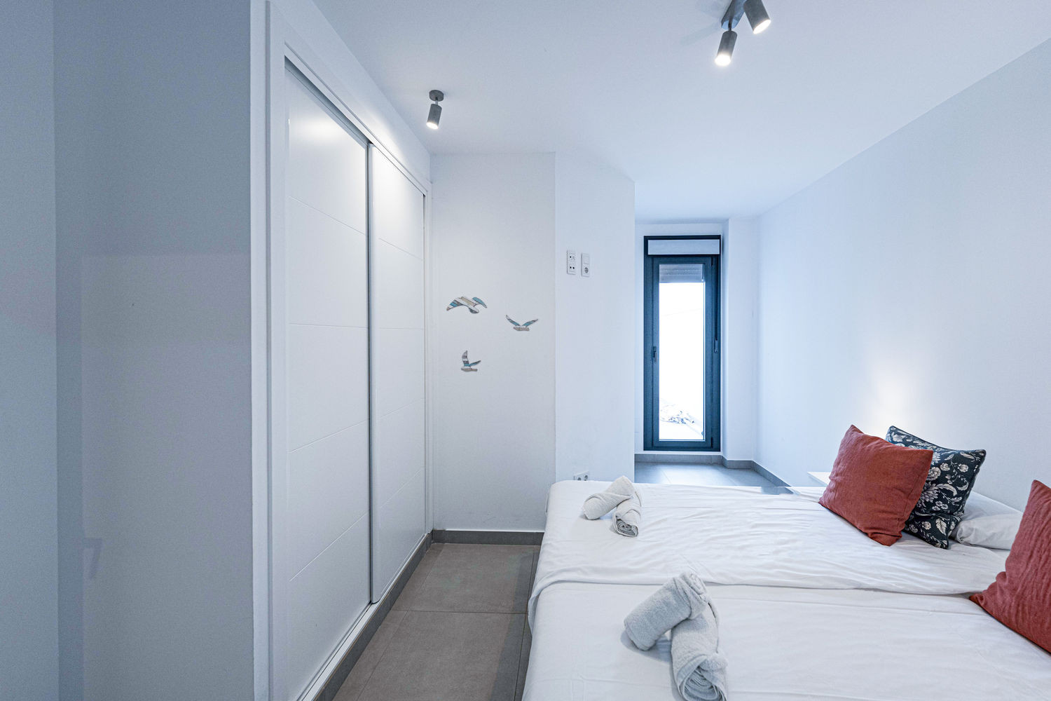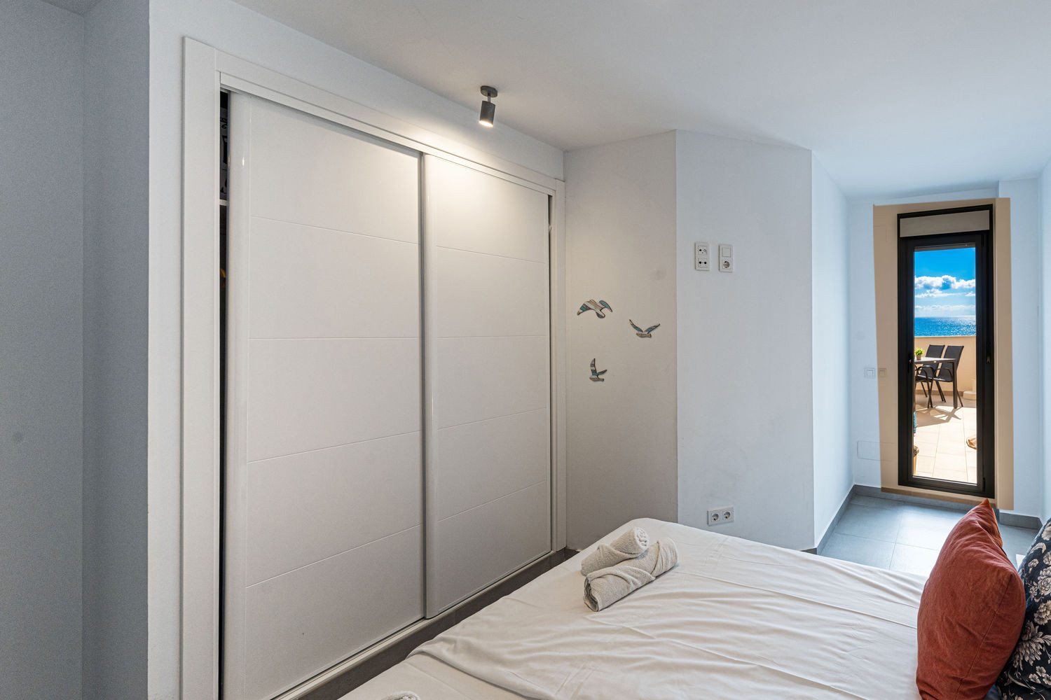 De flat heeft twee slaapkamers en twee badkamers: een met een kingsize bed en eigen badkamer, en een andere slaapkamer met een stapelbed. Het heeft ook een volledig uitgeruste moderne keuken met de modernste apparatuur, perfect om je thuis te voelen tijdens je vakantie.