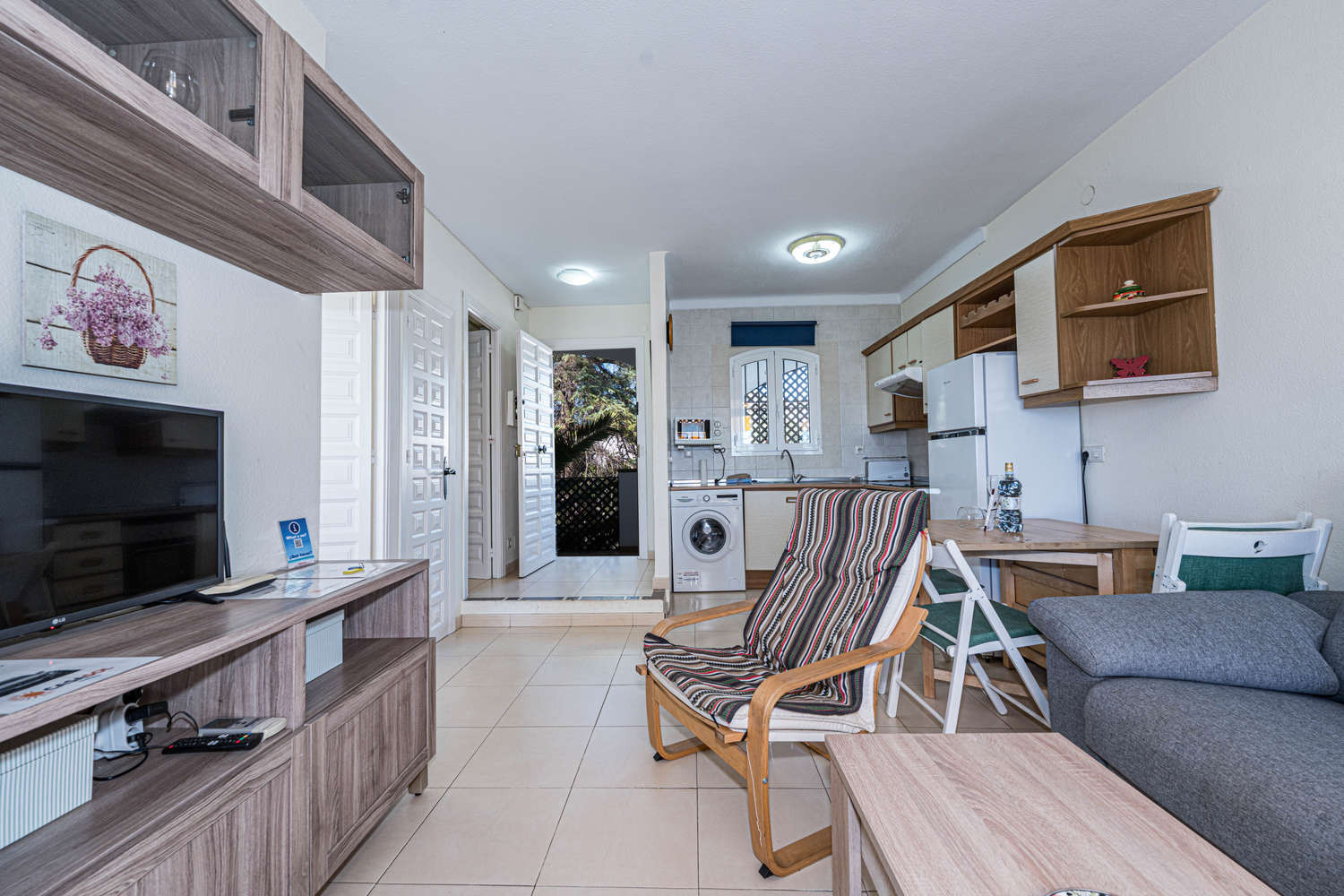 Easy clean tiled floors.