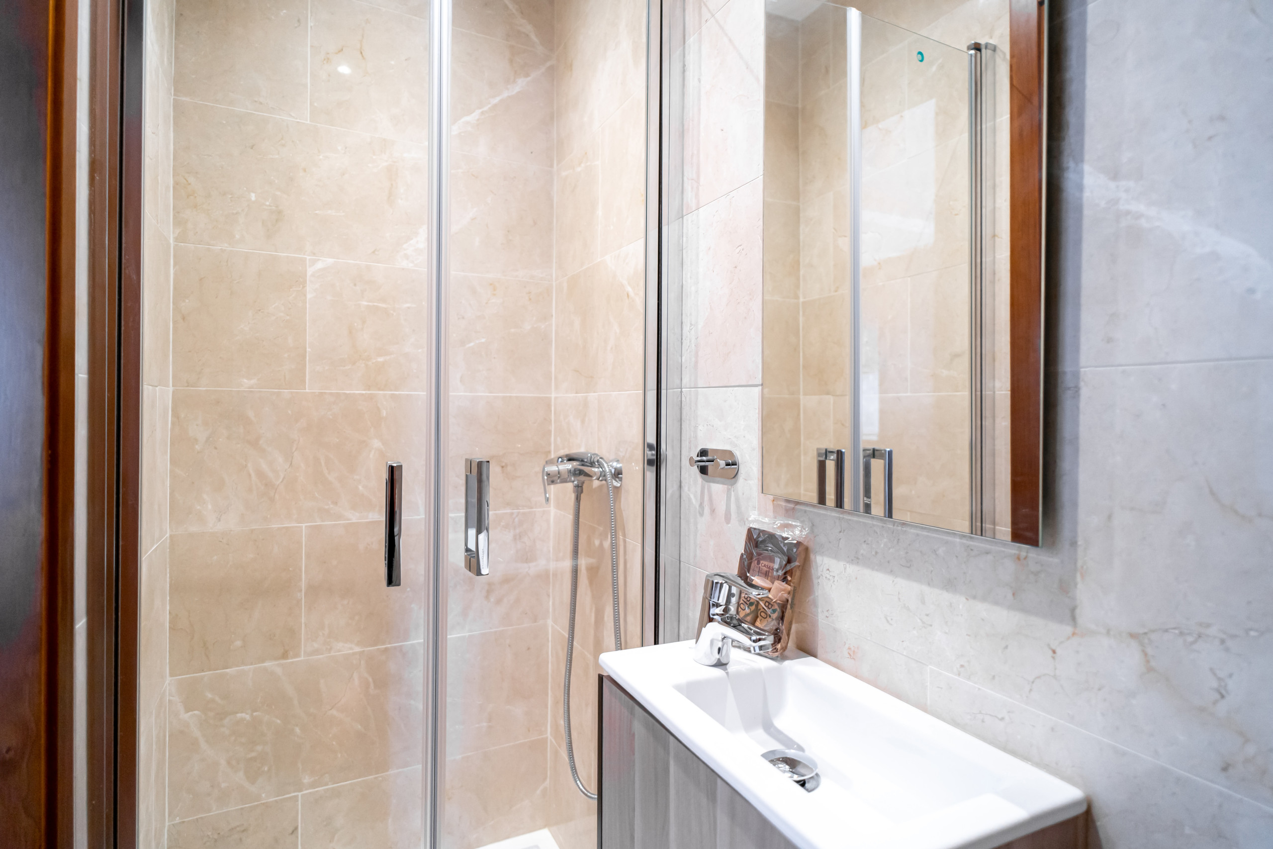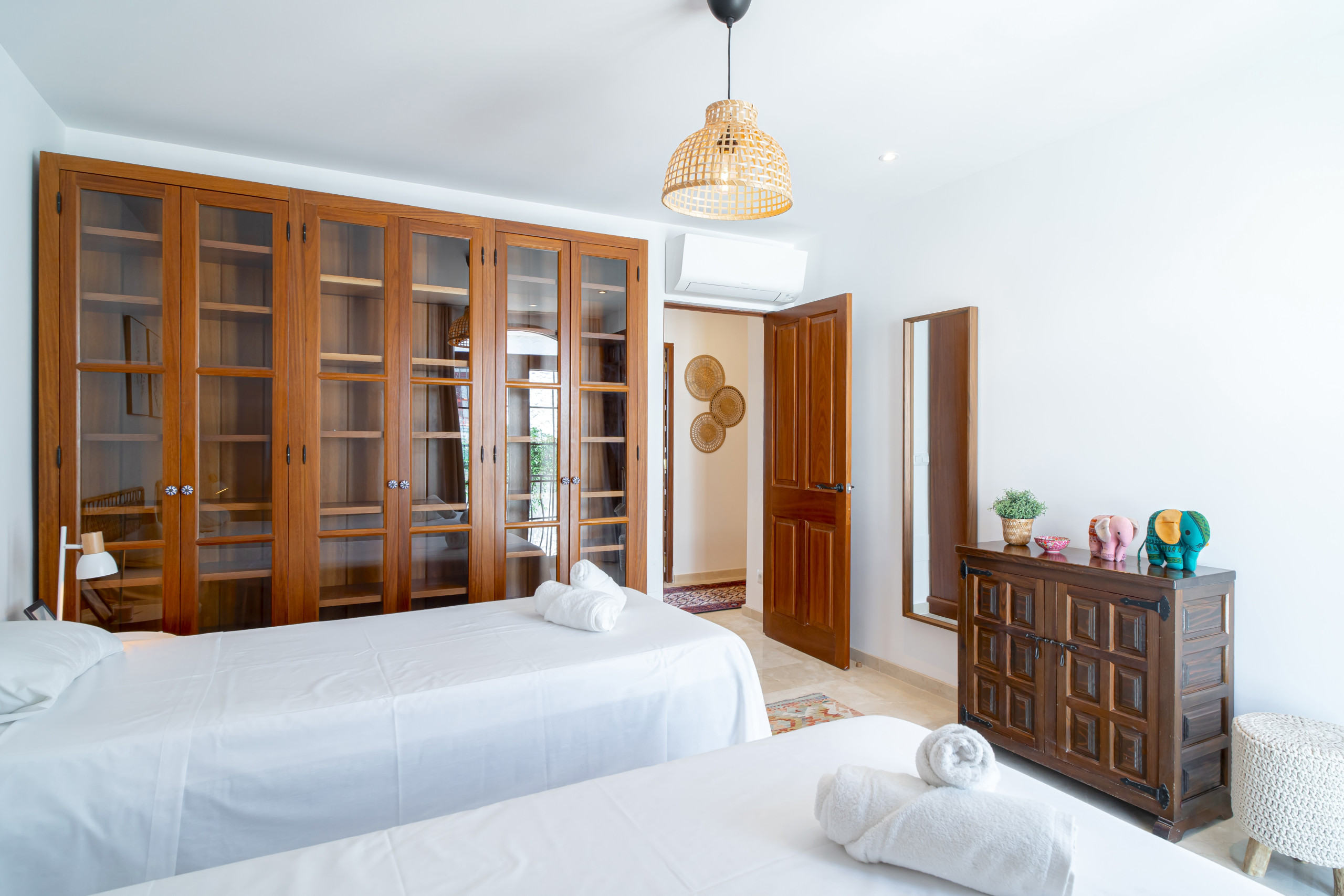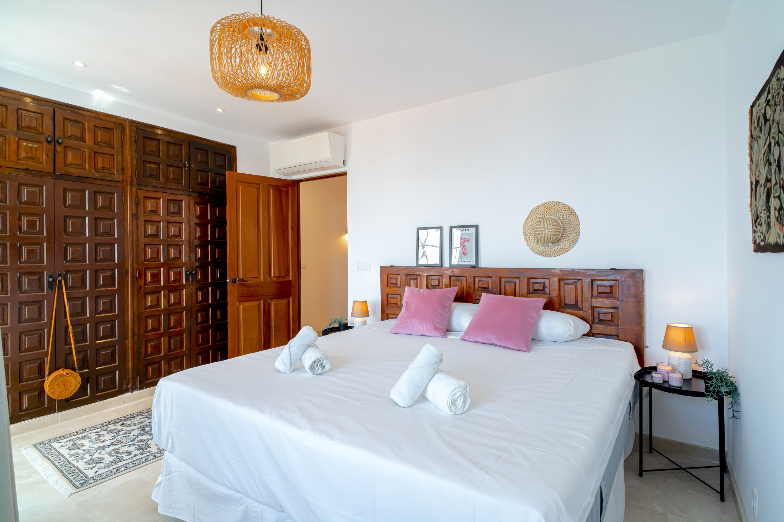 Boven zijn er twee mooi ingerichte slaapkamers. De hoofdslaapkamer heeft een kingsize bed en een klein balkon met prachtig uitzicht op zee, terwijl de tweede slaapkamer is voorzien van twee eenpersoonsbedden. Beide kamers zijn uitgerust met hoogwaardige matrassen voor een goede nachtrust en elke kamer is voorzien van airconditioning voor maximaal comfort. Op hetzelfde niveau vind je ook een stijlvolle doucheruimte.