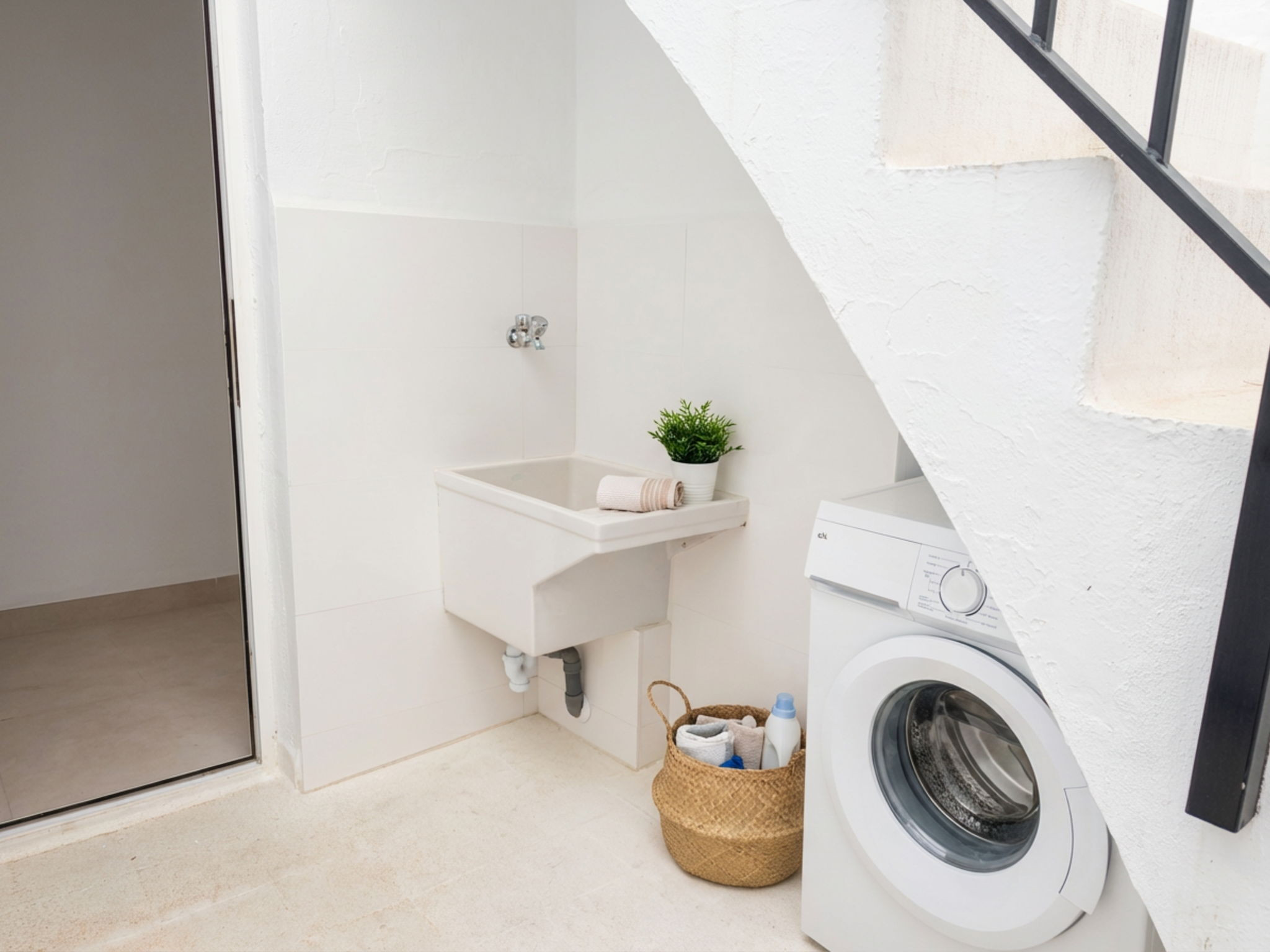 Het hoogtepunt van dit huis is de bovenverdieping, bereikbaar via een binnentrap. Na het passeren van een aparte wasruimte met wasmachine, kom je op het solariumterras voor exclusief gebruik. Uitgerust met ligstoelen, tafel en stoelen, is dit de perfecte plek om te ontspannen na een dag aan het strand. Vanaf hier kun je de hele dag van de zon genieten en buiten dineren met volledige privacy, terwijl je uitkijkt over de typische daken van het dorp met een klein vleugje mediterraan blauw aan de horizon.Waarom Kiezen voor Casa Chica voor Jouw Vakantie