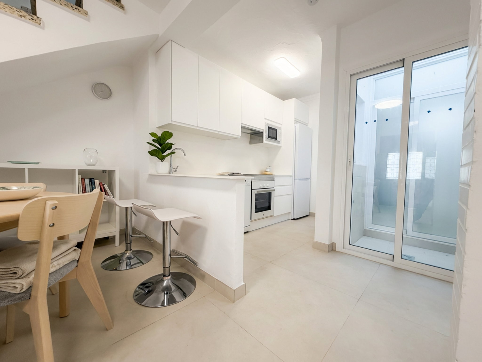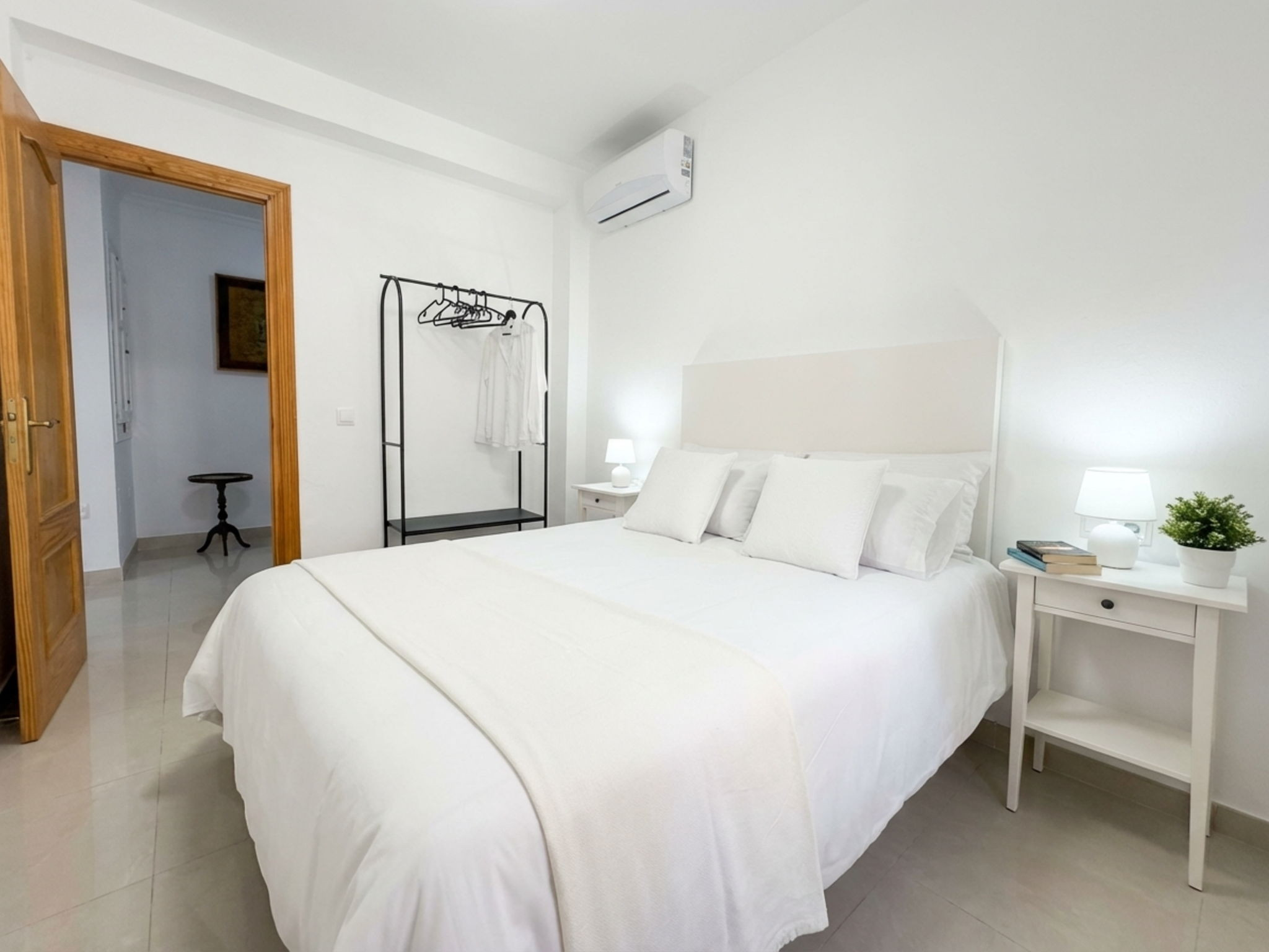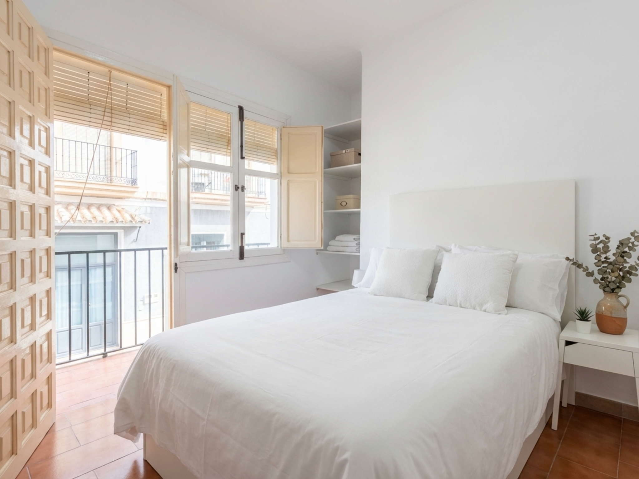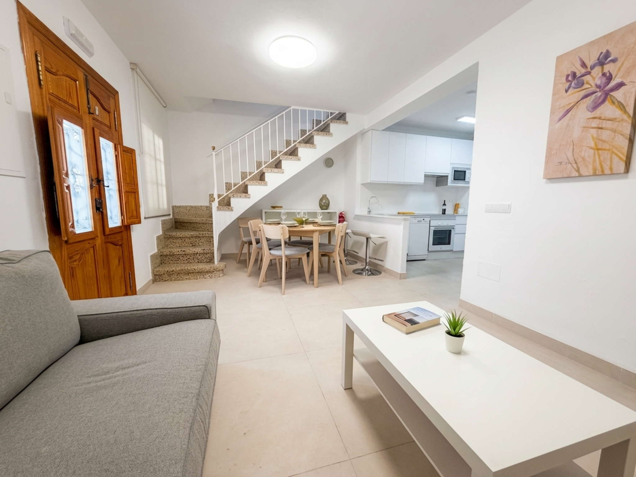 Hoewel de naam Casa Chica is, bieden de hoge plafonds en de recente volledige renovatie een ruime en moderne plek in het hart van het centrum. Bij binnenkomst word je verwelkomd door een open woonruimte met Smart TV en een volledig uitgeruste open keuken, ontworpen voor wie in alle rust wil ontbijten voordat hij op pad gaat. Het mooiste is dat de ervaring direct voor de deur begint: je hoeft slechts minder dan 10 minuten te wandelen om bij het Balcón de Europa of de beroemdste baaien van Nerja te komen, terwijl je geniet van het gemak om alles bij de hand te hebben zonder afhankelijk te zijn van een voertuig.