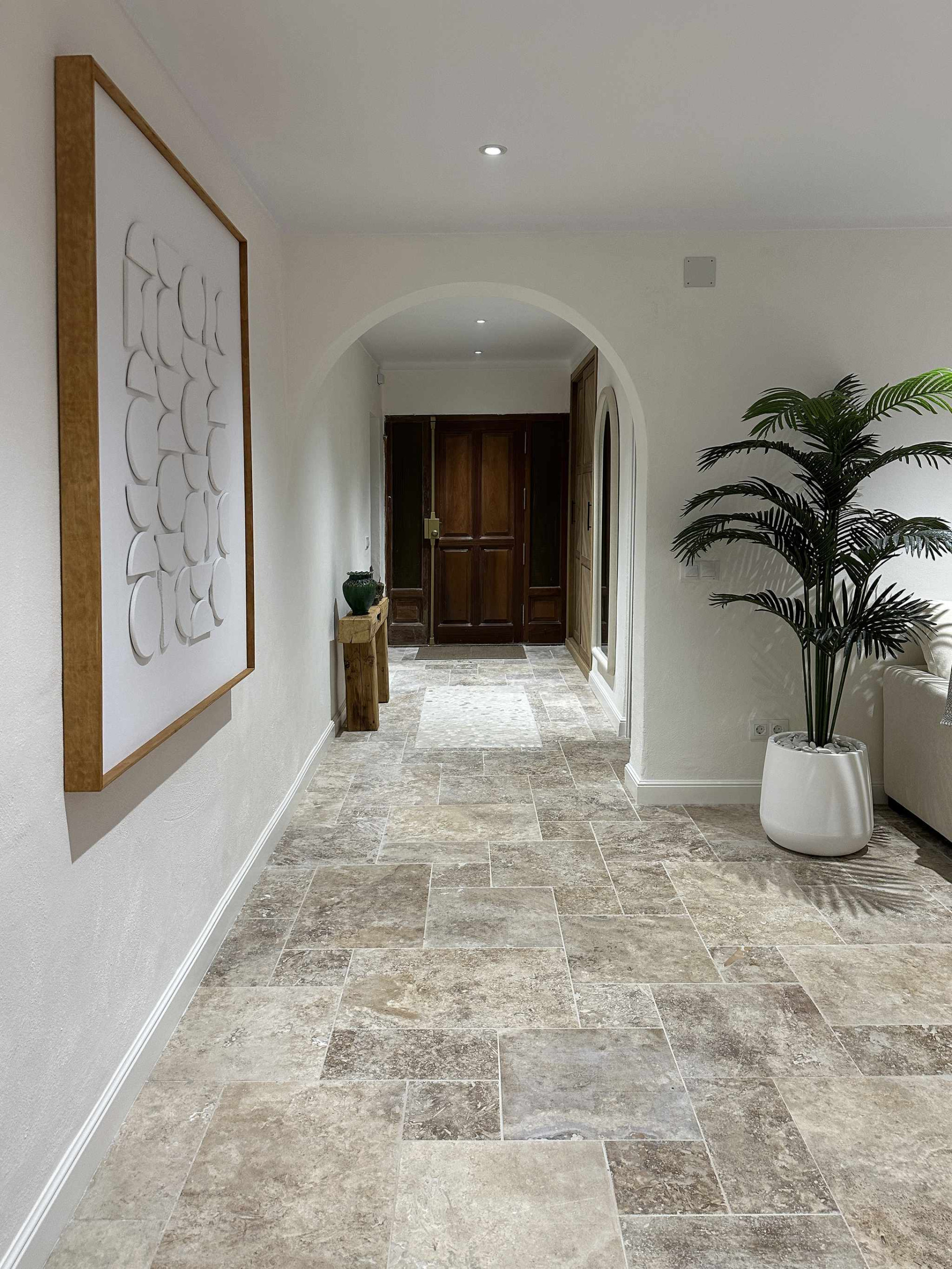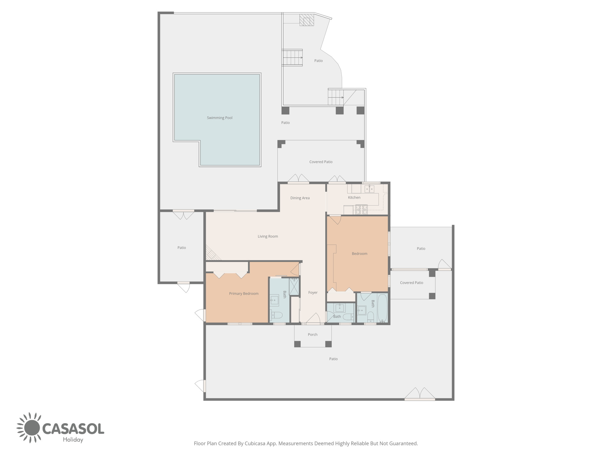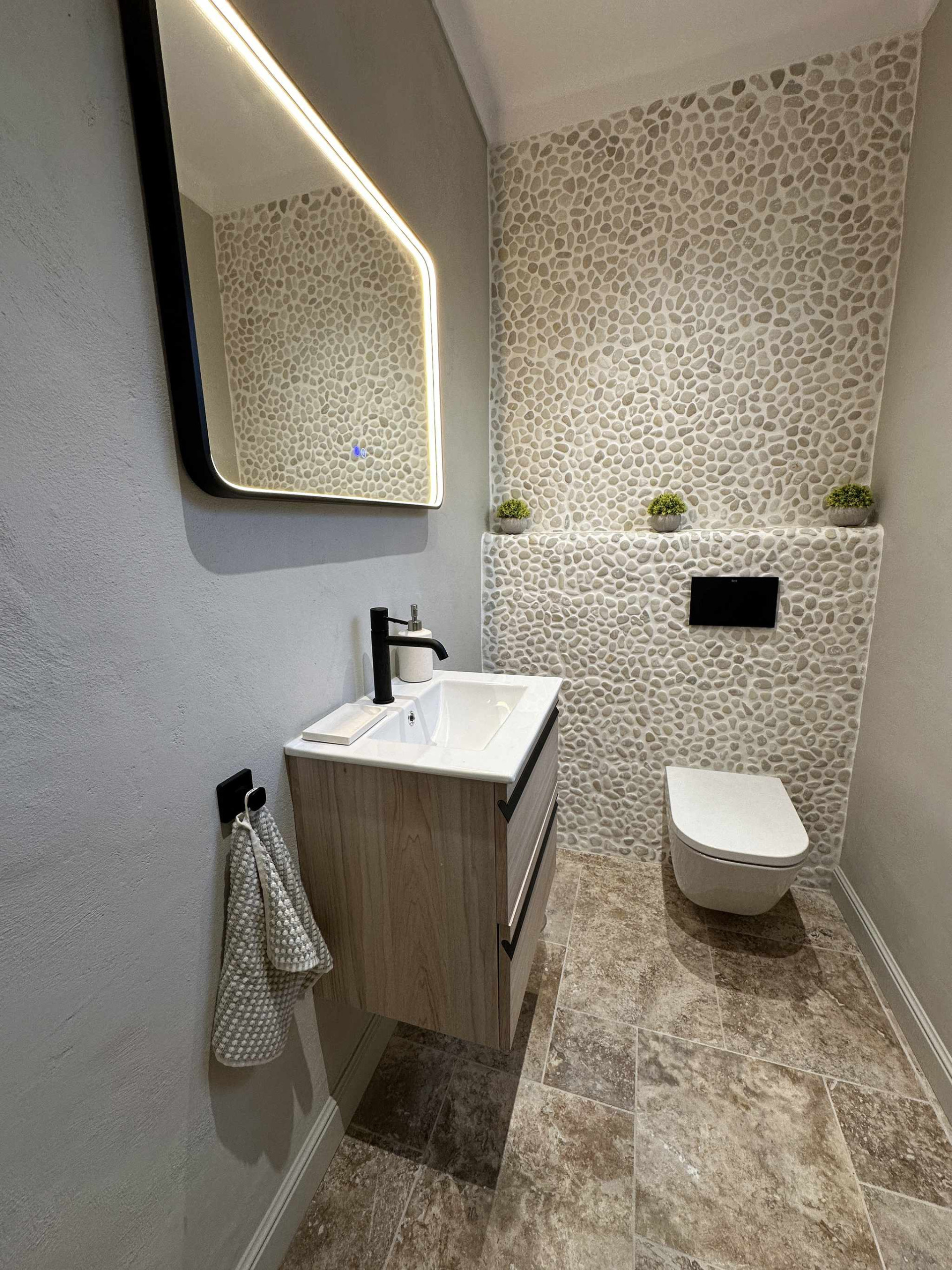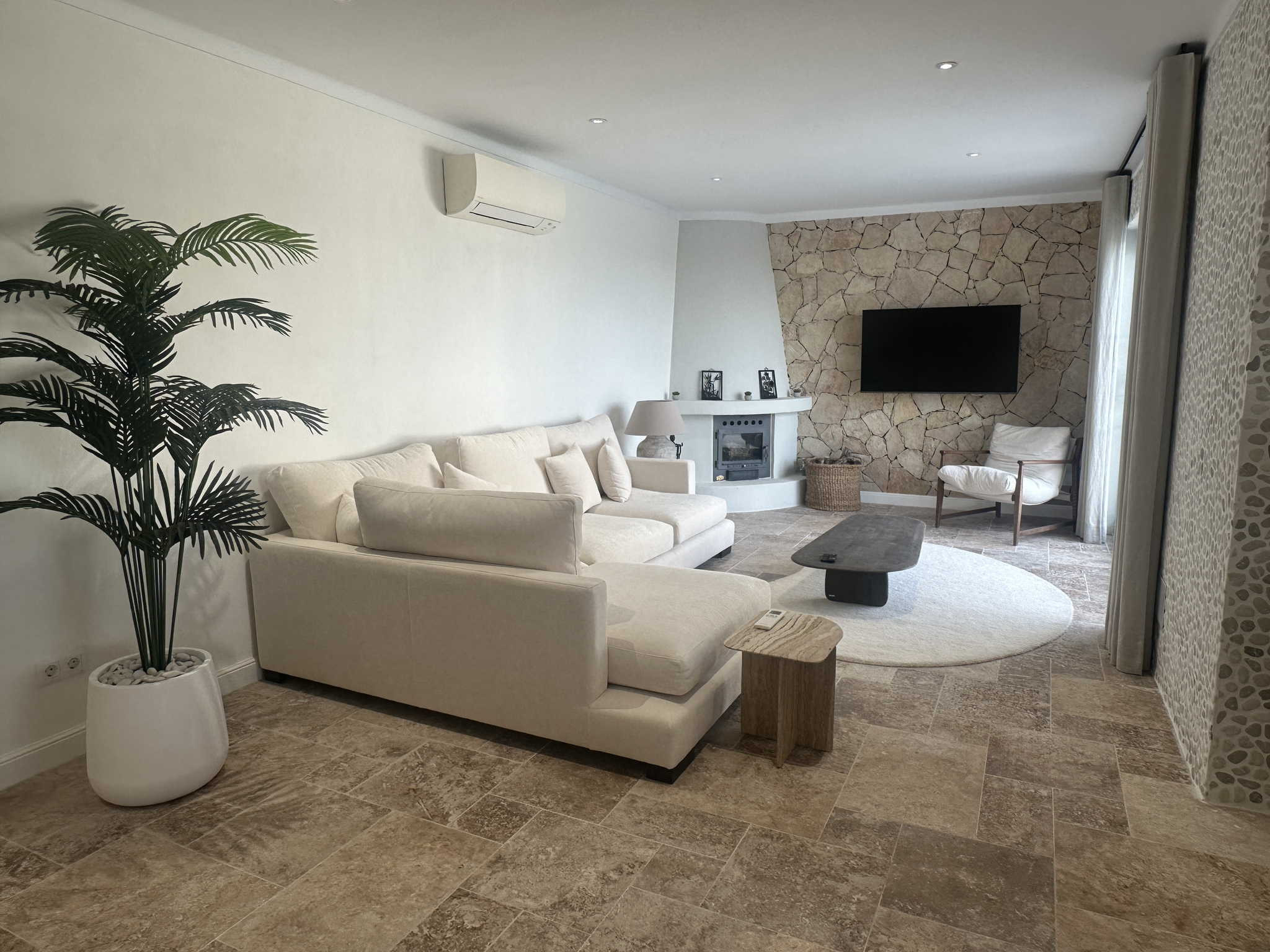 De indeling van het huis is ontworpen voor het comfort van vier personen. Bij binnenkomst is er een praktisch gastentoilet voor de gemeenschappelijke ruimtes. Aan de linkerkant is de eerste slaapkamer, uitgerust met een tweepersoonsbed van goede kwaliteit en een privé en-suite badkamer. De woonkamer, ingericht in een eigentijdse en gezellige stijl, sluit aan op een volledig uitgeruste semi-open keuken. Aan de andere kant van de kamer heeft de tweede slaapkamer ook een eigen en-suite badkamer en tweepersoonsbed. Deze “dubbele suite” configuratie zorgt ervoor dat elk stel of gast zijn eigen privéruimte heeft zonder een badkamer te delen.